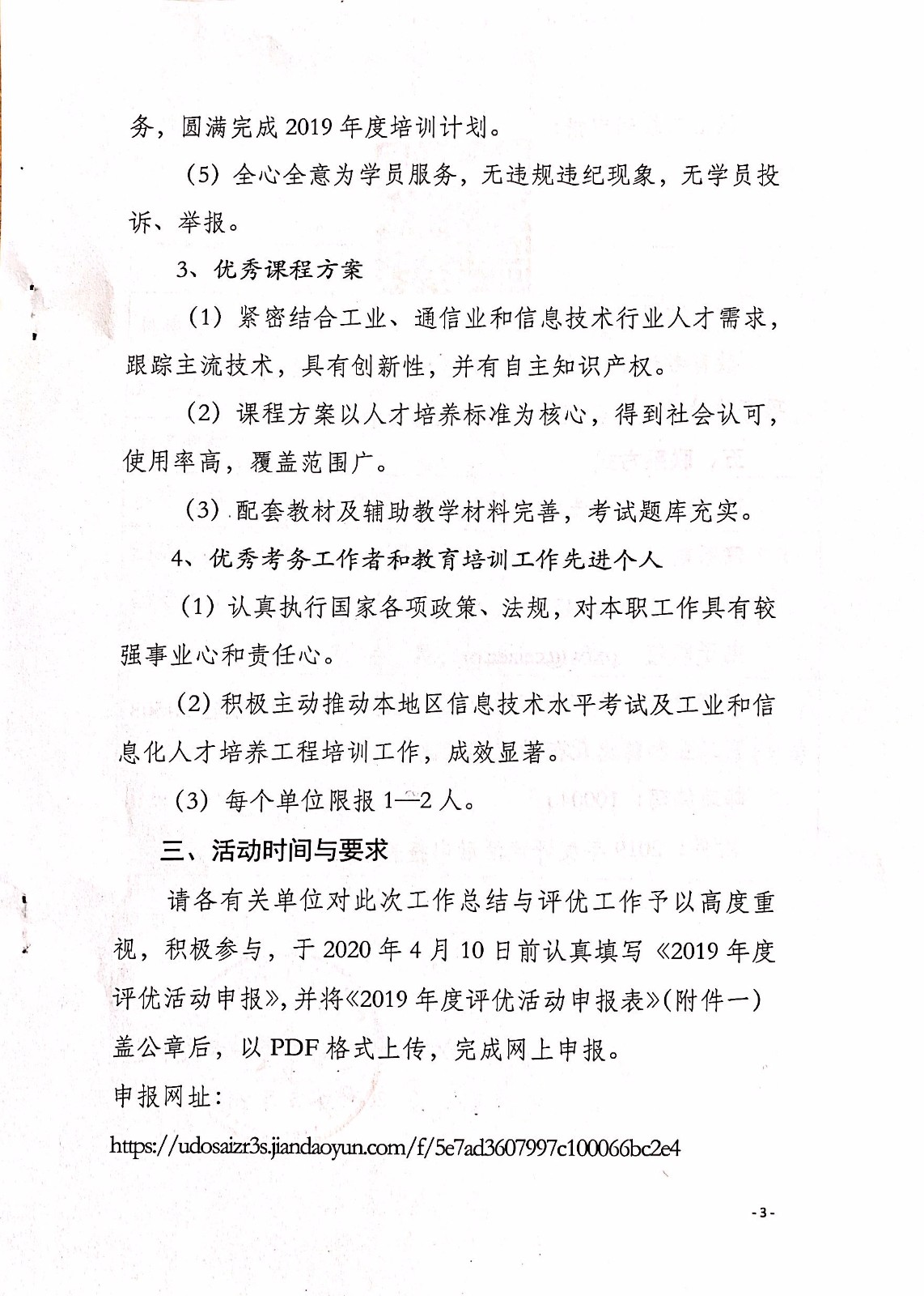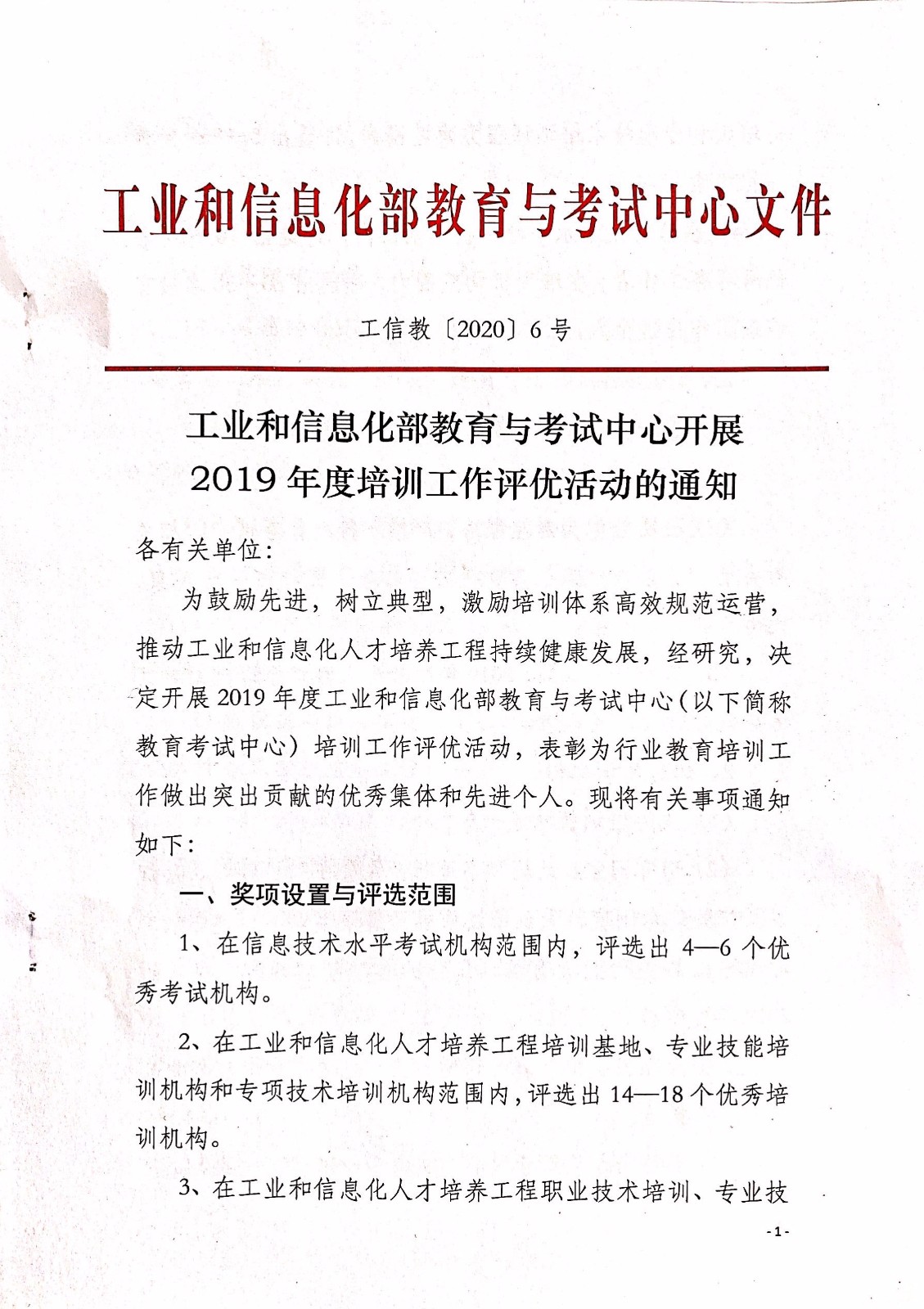 工業(yè)和信息化部教育與考試中心開展2019年度培訓(xùn)工作評(píng)優(yōu)活動(dòng)的通知