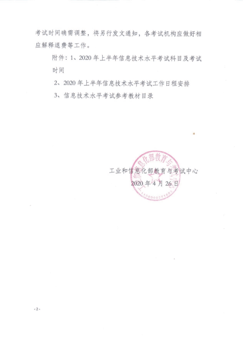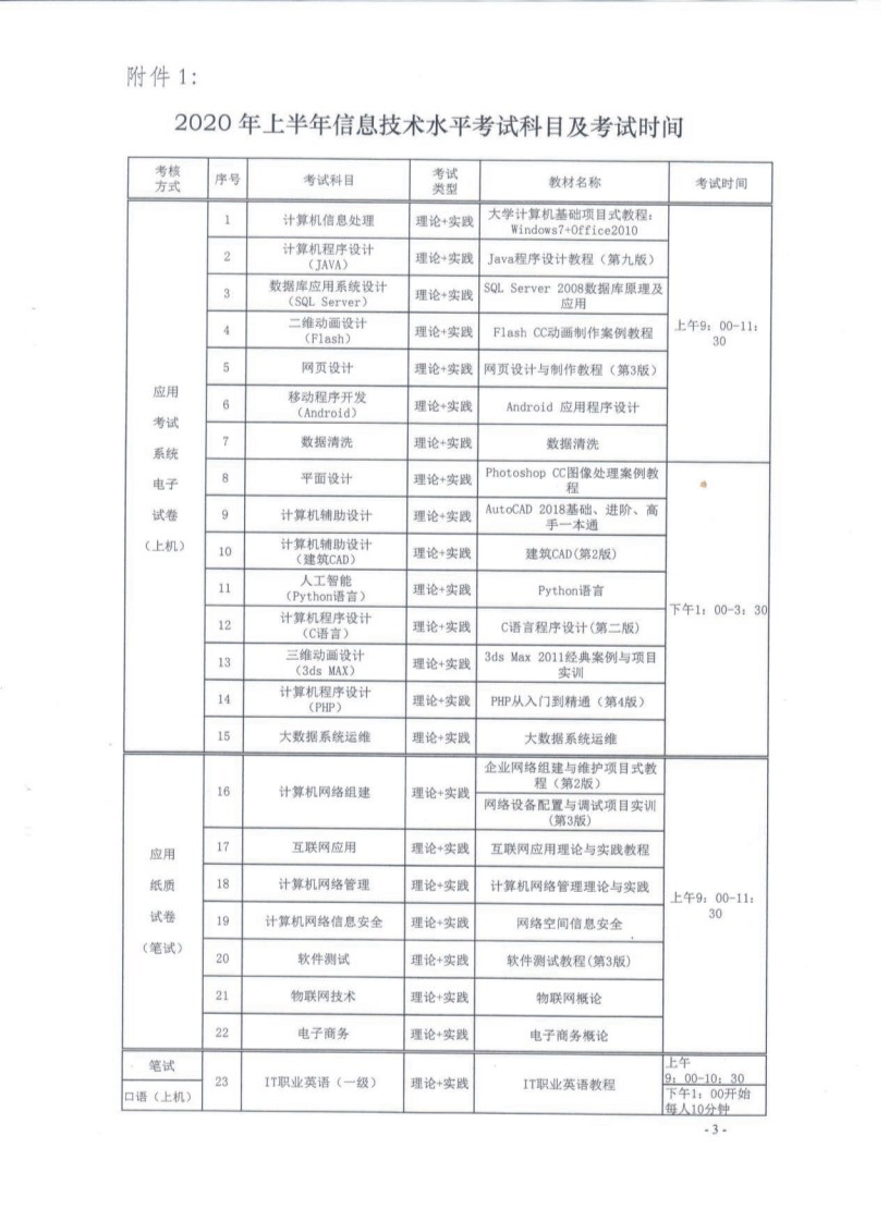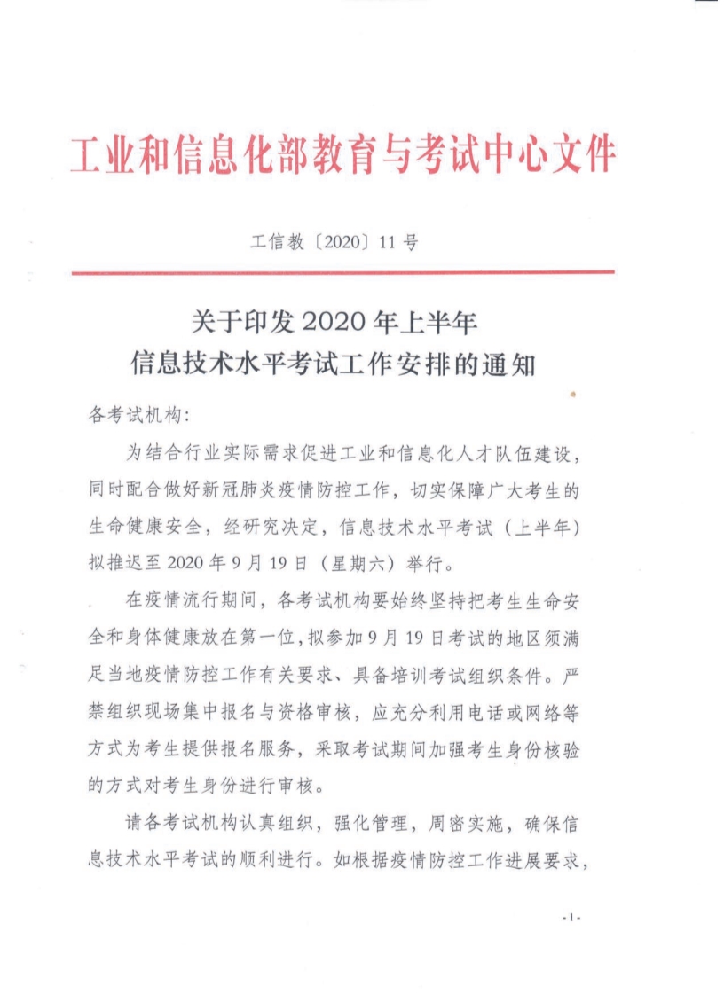 關于印發(fā)2020年上半年信息技術水平考試工作安排的通知