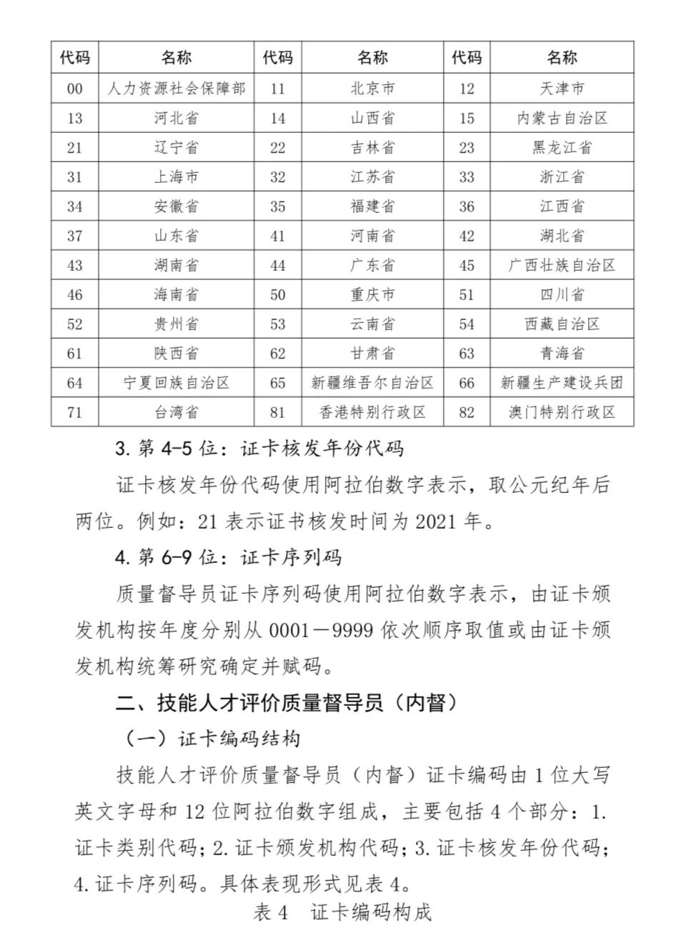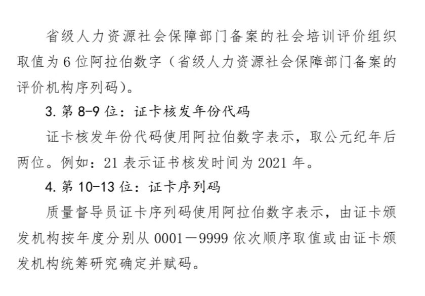 技能人才評價質(zhì)量督導(dǎo)員證卡編碼規(guī)則