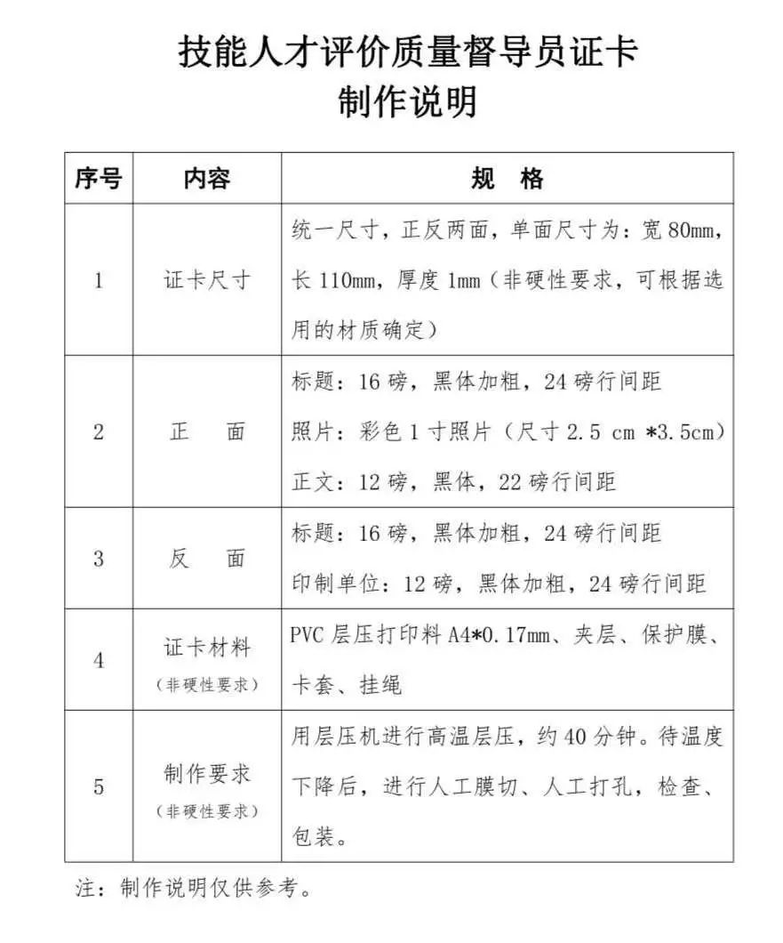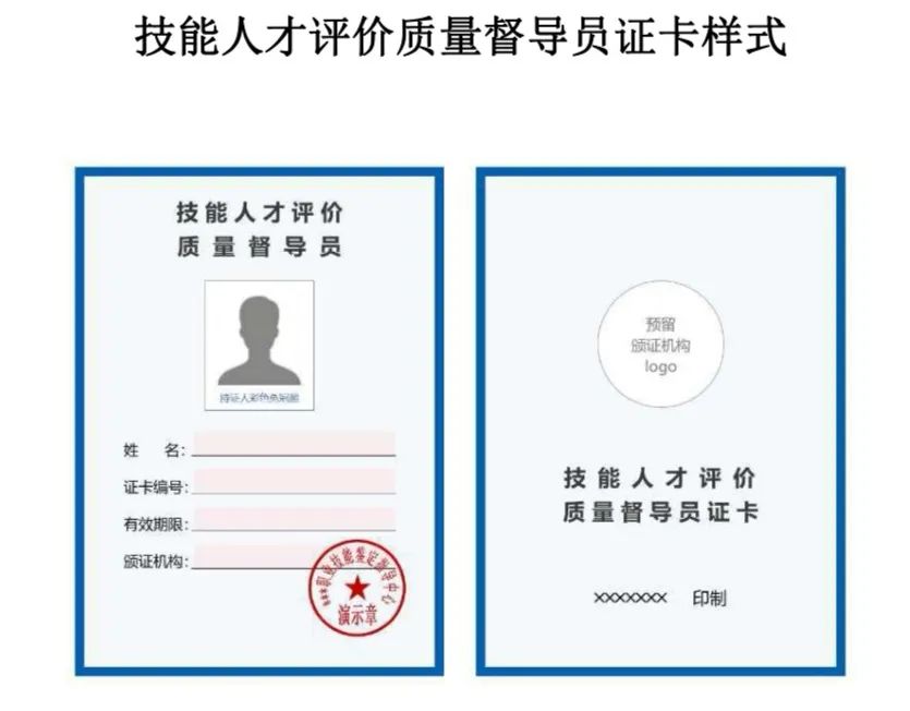 《技能人才評價質(zhì)量督導(dǎo)員》證卡由人力資源社會保障部統(tǒng)一樣式和編碼規(guī)則。