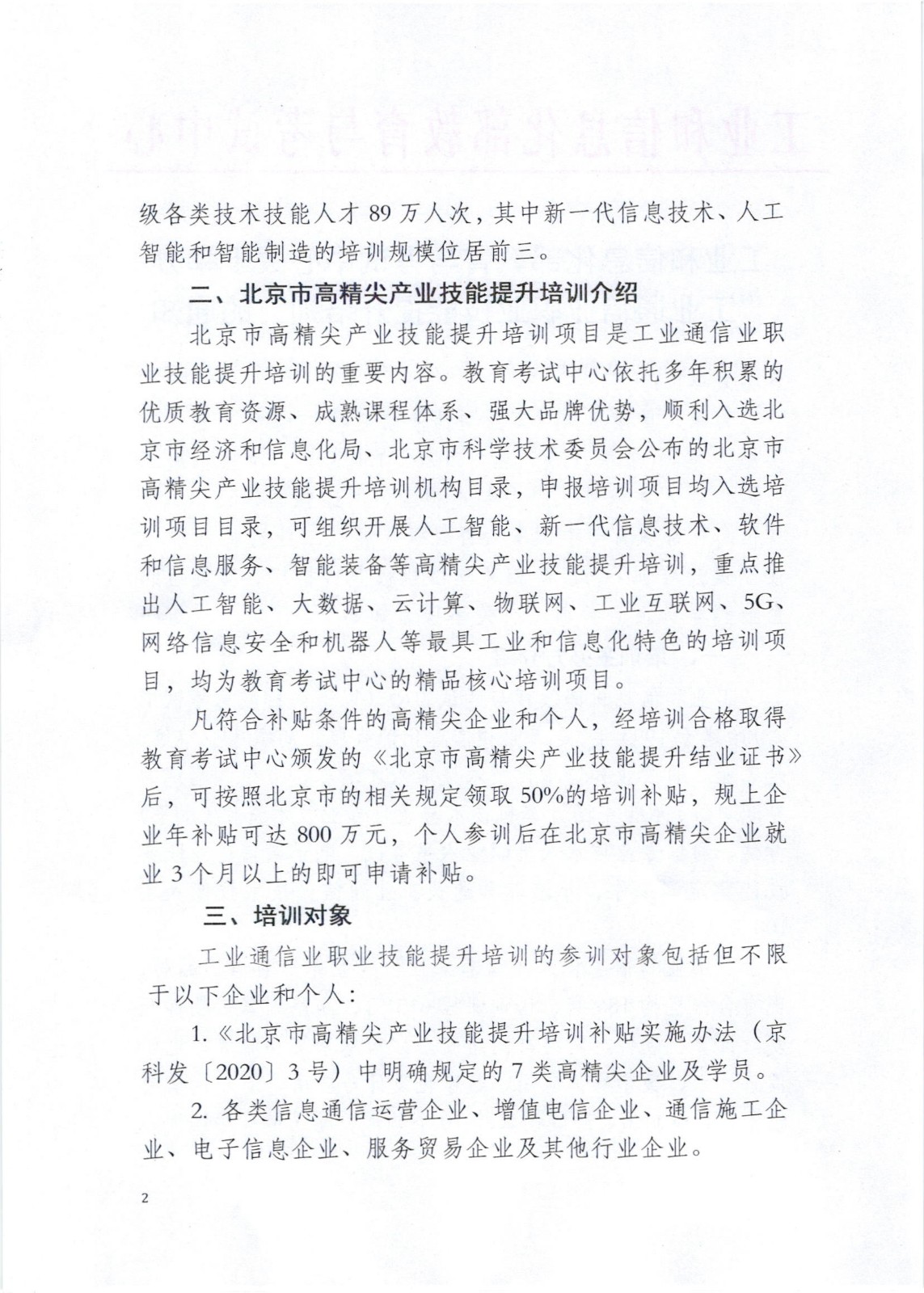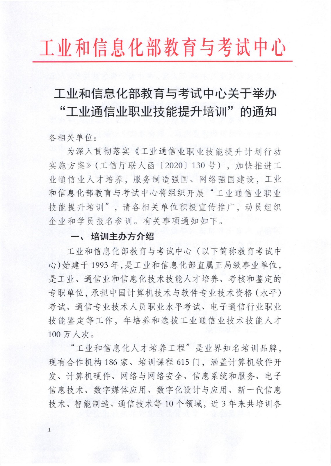 工業(yè)和信息化部教育與考試中心關于舉辦“工業(yè)通信業(yè)職業(yè)技能提升培訓”的通知