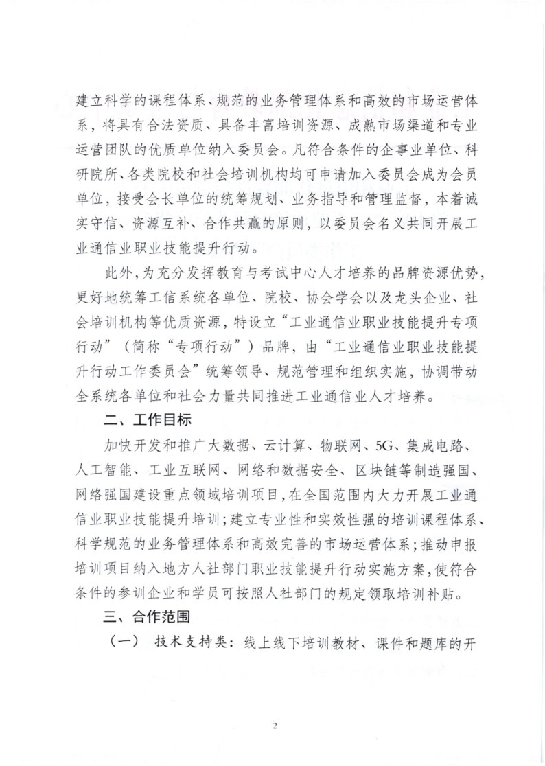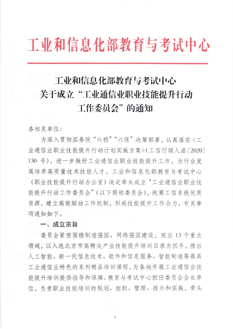 工業(yè)和信息化部教育與考試中心關(guān)于成立“工業(yè)通信業(yè)職業(yè)技能提升行動(dòng)工作委員會(huì)”的通知