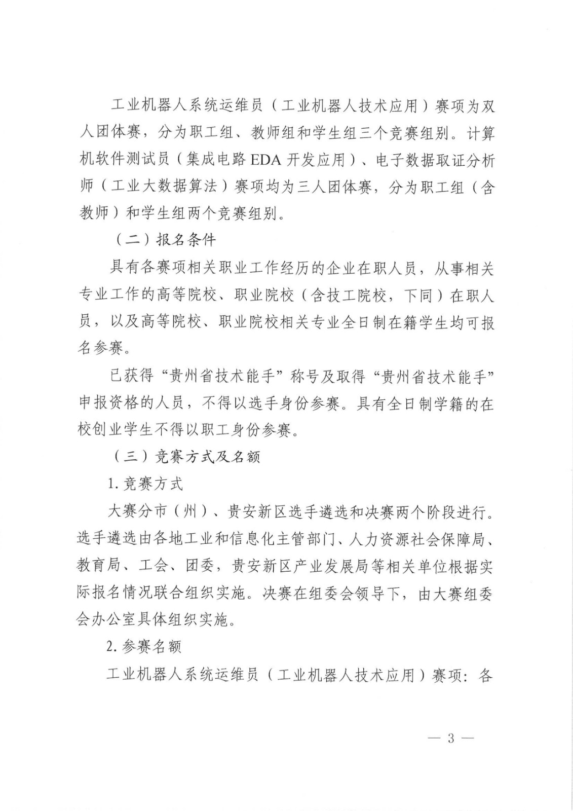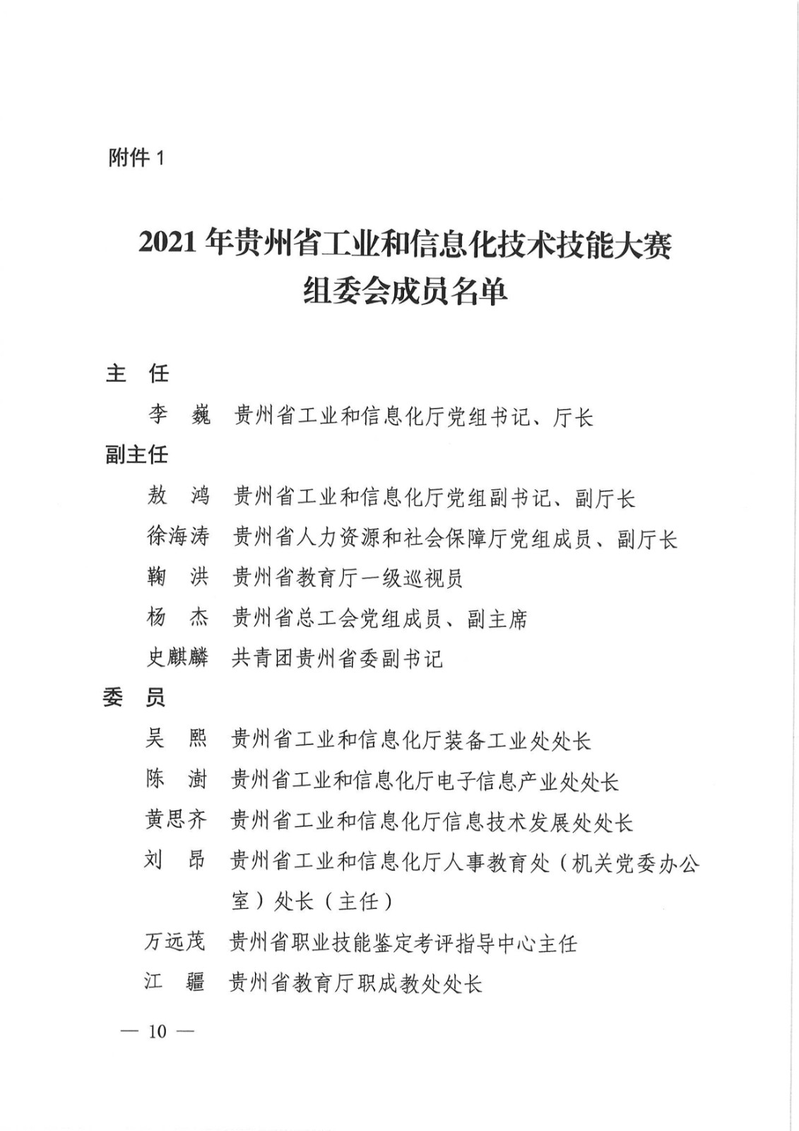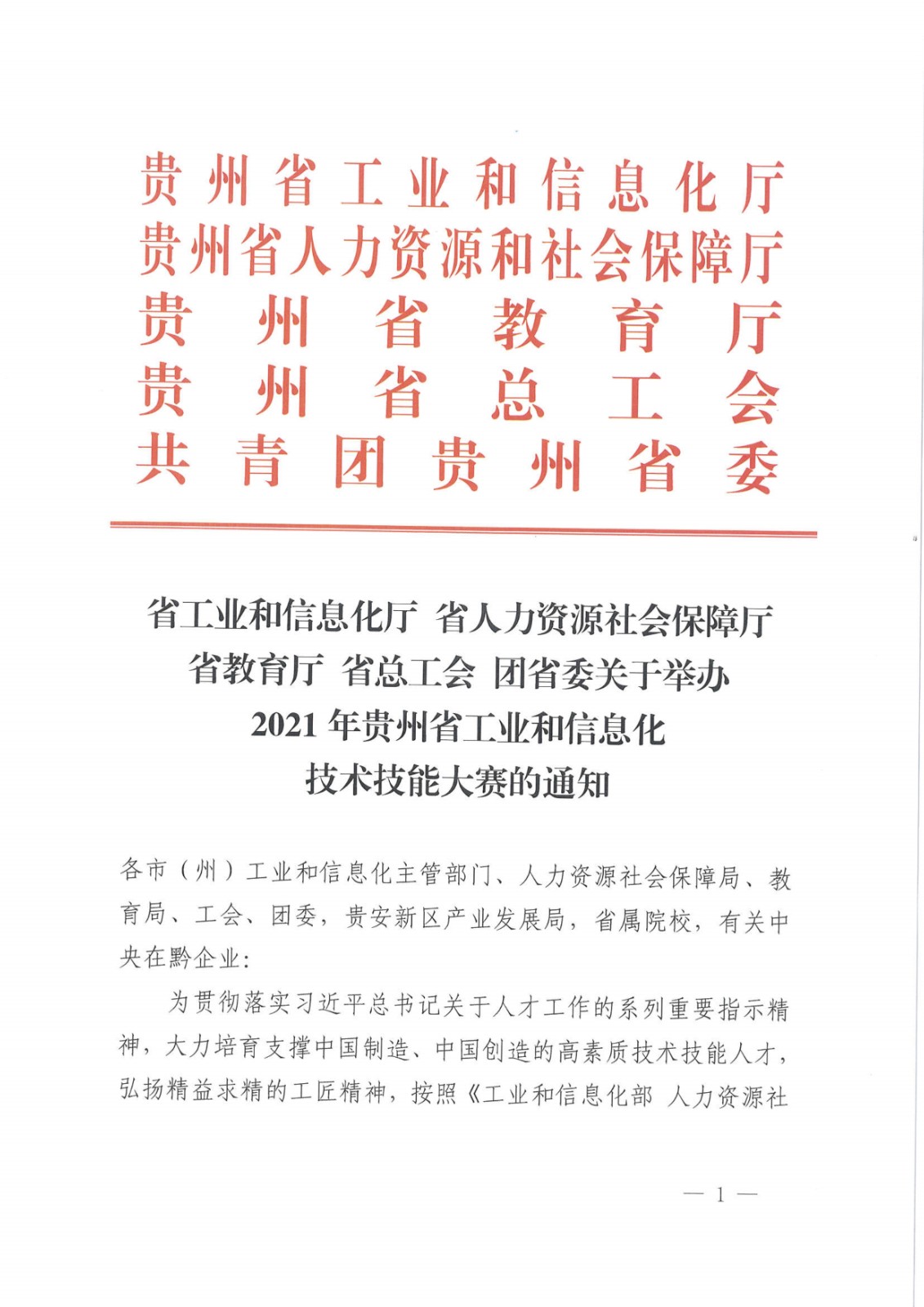 貴州省工業(yè)和信息化廳 省人力資源社會保障廳 省教育廳 省總工會 團省委關(guān)于舉辦2021年貴州省工業(yè)和信息化技術(shù)技能大賽的通知