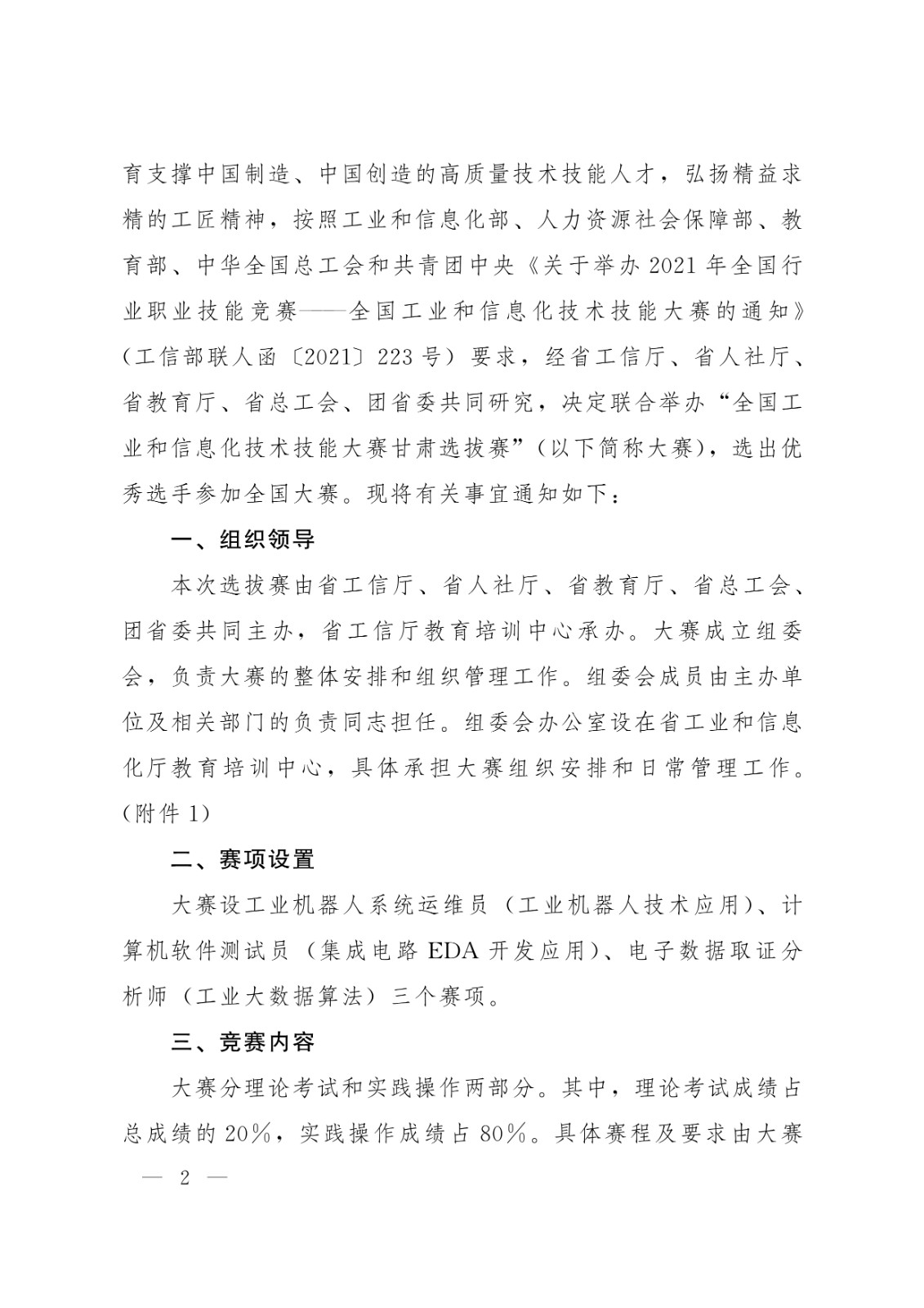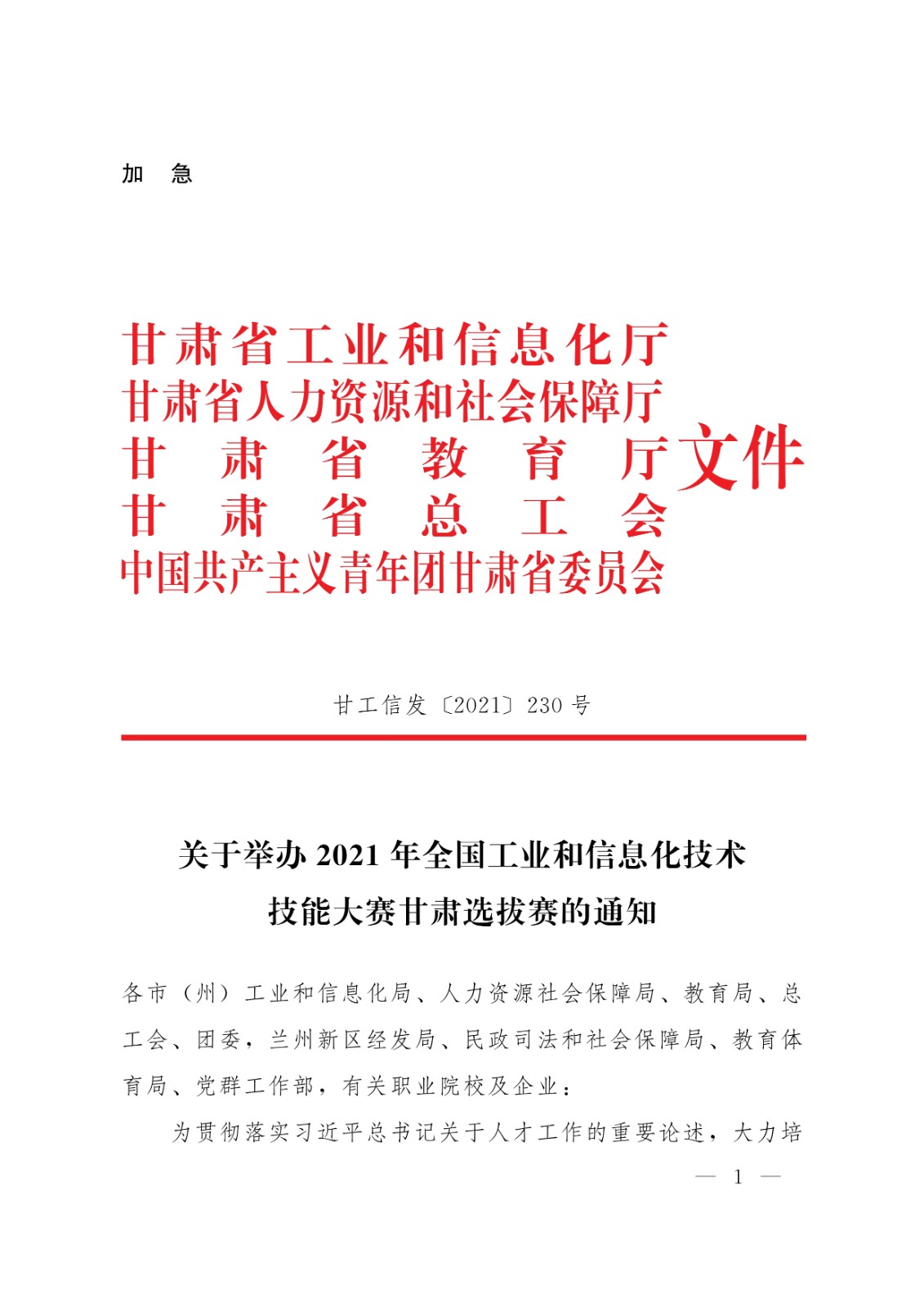 甘肅省2021年全國(guó)工業(yè)和信息化技術(shù)技能大賽選拔賽通知