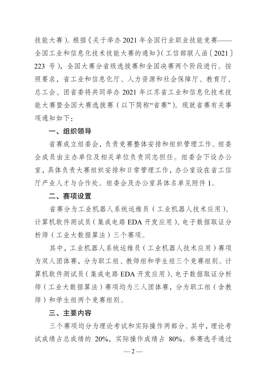 江蘇省2021年全國工業(yè)和信息化技術(shù)技能大賽選拔賽通知