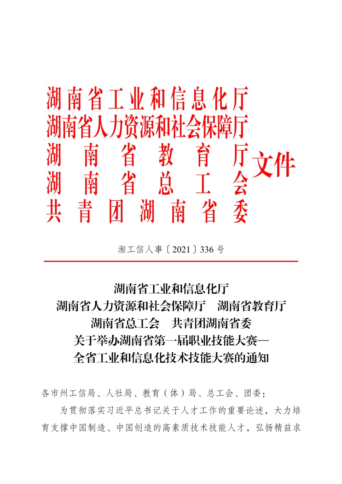 關(guān)于舉辦湖南省第一屆職業(yè)技能大賽——全省工業(yè)和信息化技術(shù)技能大賽的通知