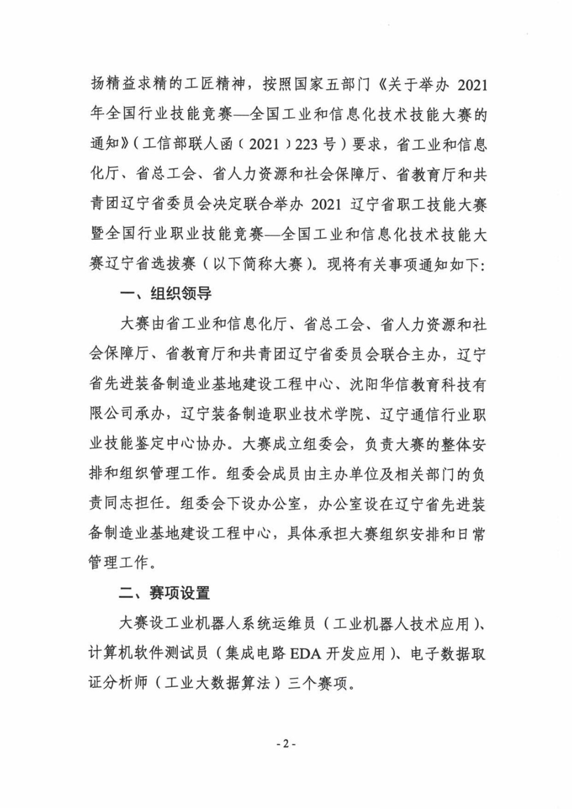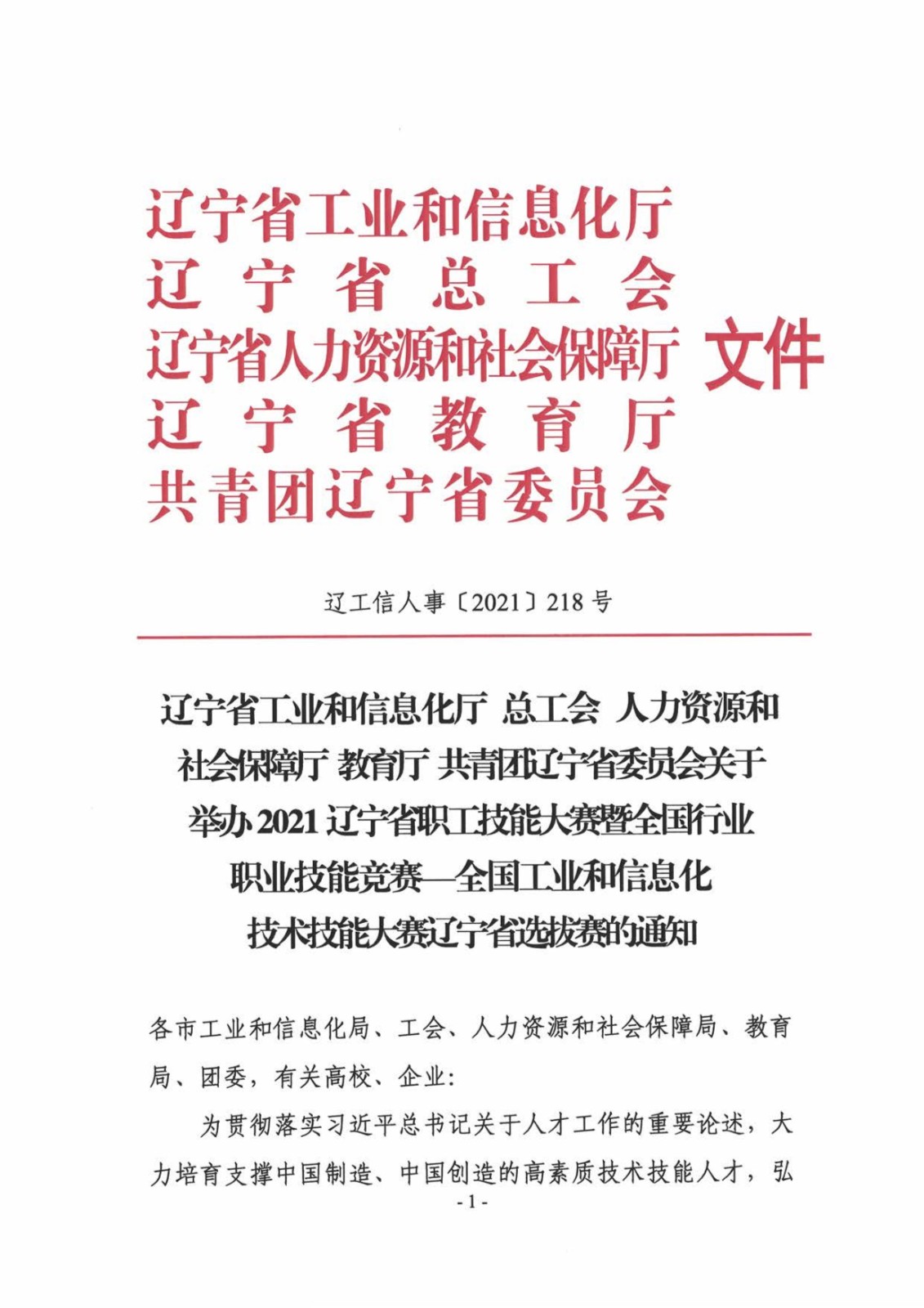 關于舉辦2021年全國工業(yè)和信息化技術技能大賽遼寧省選拔賽的通知