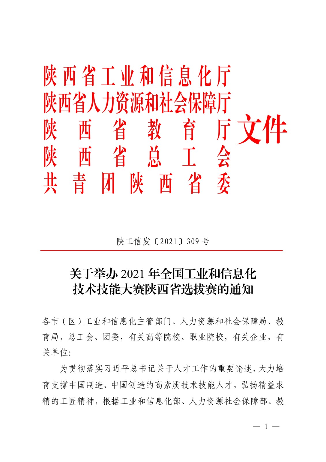 關(guān)于舉辦2021年全國工業(yè)和信息化技術(shù)技能大賽陜西省選拔賽的通知