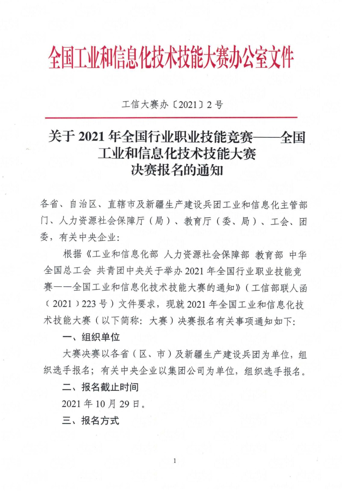 關(guān)于2021年全國(guó)行業(yè)職業(yè)技能競(jìng)賽——全國(guó)工業(yè)和信息化技術(shù)技能大賽決賽報(bào)名的通知