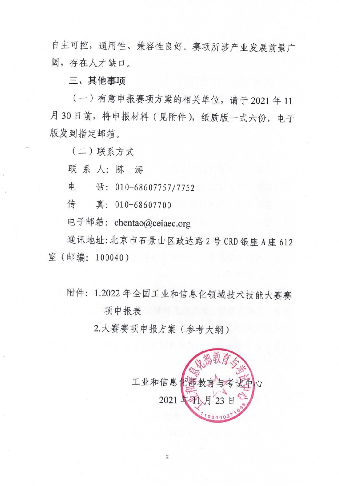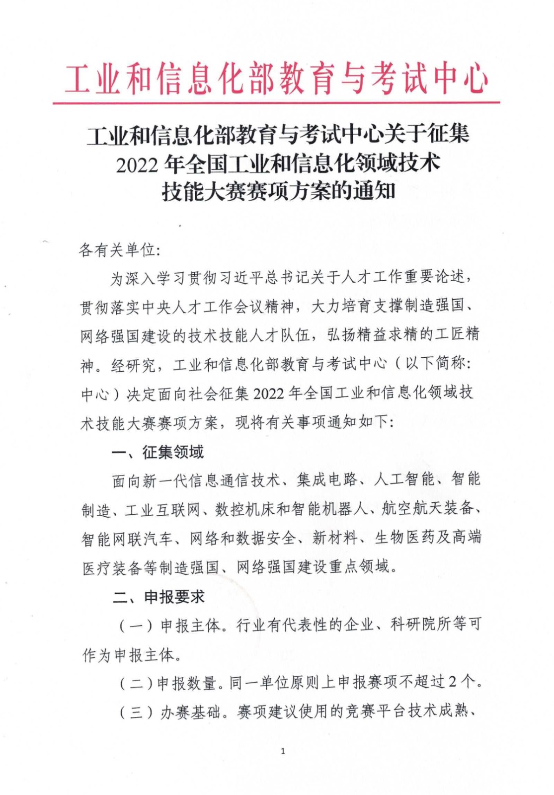 工業(yè)和信息化部教育與考試中心關(guān)于征集2022年全國(guó)工業(yè)和信息化領(lǐng)域技術(shù)技能大賽賽項(xiàng)方案的通知