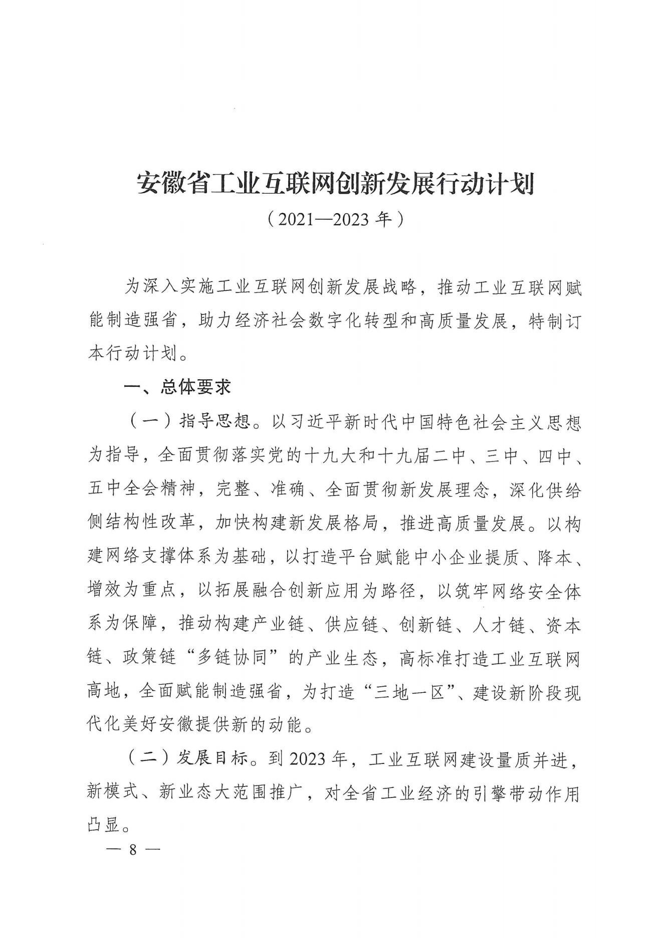 安徽省人民政府辦公廳關(guān)于印發(fā)支持工業(yè)互聯(lián)網(wǎng)發(fā)展若干政策和安徽省工業(yè)互聯(lián)網(wǎng)創(chuàng)新發(fā)展行動(dòng)計(jì)劃(2021-2023年)的通知