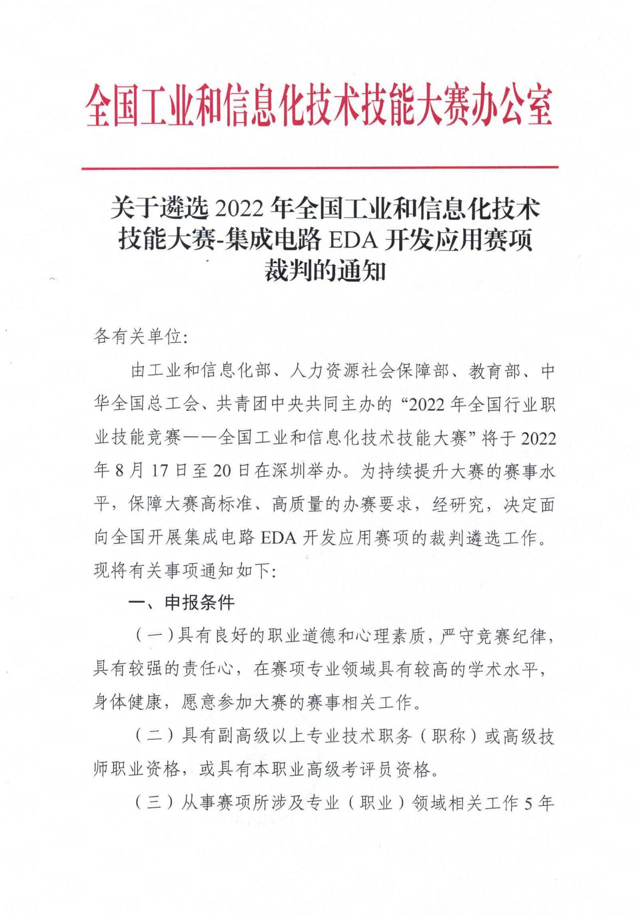 關(guān)于遴選全國(guó)工業(yè)和信息化技術(shù)技能大賽集成電路EDA技術(shù)應(yīng)用裁判的通知.pdf
