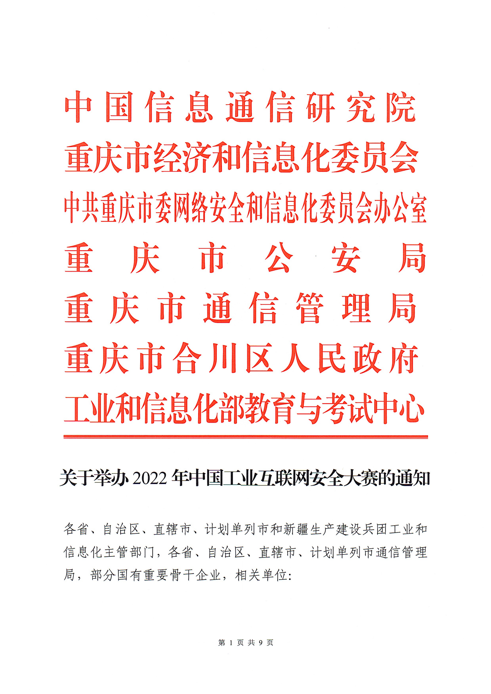 關(guān)于舉辦2022年中國工業(yè)互聯(lián)網(wǎng)安全大賽的通知