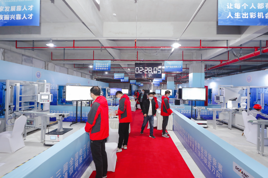 11月27日,由工業(yè)和信息化部教育與考試中心、中國(guó)就業(yè)培訓(xùn)技術(shù)指導(dǎo)中心共同主辦,臺(tái)州技師學(xué)院、威海海洋職業(yè)學(xué)院承辦,山東棟梁科技設(shè)備有限公司、庫(kù)卡機(jī)器人(上海)有限公司協(xié)辦的第三屆全國(guó)電子通信行業(yè)職業(yè)技能競(jìng)賽信息通信網(wǎng)絡(luò)運(yùn)行管理員(協(xié)同制造方向)賽項(xiàng)決賽在浙江省臺(tái)州市開幕。工業(yè)和信息化部教育與考試中心副主任劉明亮,臺(tái)州灣新區(qū)管委會(huì)黨工委委員、副主任陳榮東,大賽裁判長(zhǎng)羊榮金,大賽仲裁長(zhǎng)金文兵,臺(tái)州技師學(xué)院黨委書記李金國(guó),山東棟梁科技設(shè)備有限公司董事長(zhǎng)蔣作棟等來(lái)自大賽主辦單位、承辦單位、協(xié)辦單位的領(lǐng)導(dǎo)及來(lái)自各省的參賽選手、領(lǐng)隊(duì)、裁判專家、媒體代表以“線上+線下”相結(jié)合的方式,共同出席了大賽開幕式。開幕式由臺(tái)州技師學(xué)院院長(zhǎng)章永華主持。