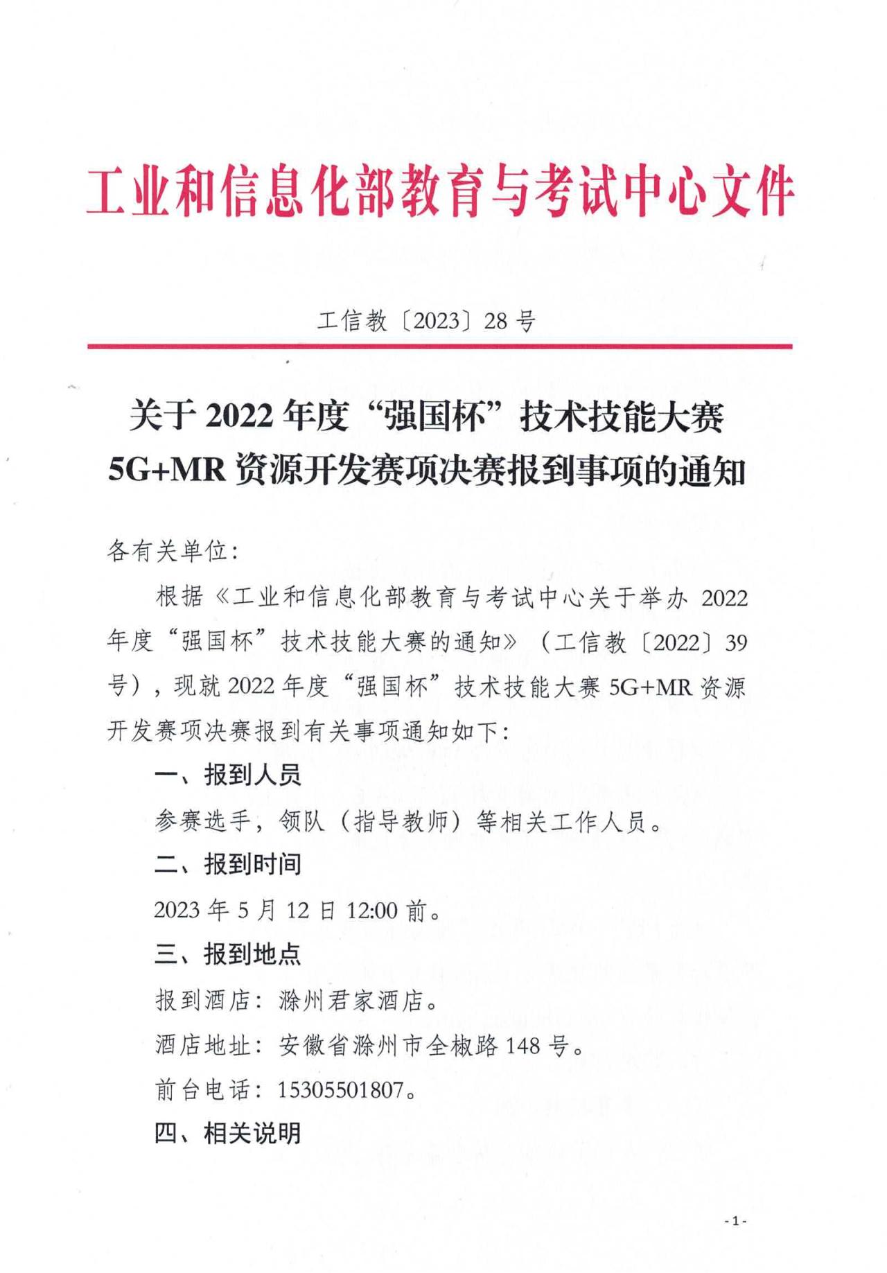 關(guān)于2022年度“強國杯”技術(shù)技能大賽 5G+MR資源開發(fā)賽項決賽報到事項的通知