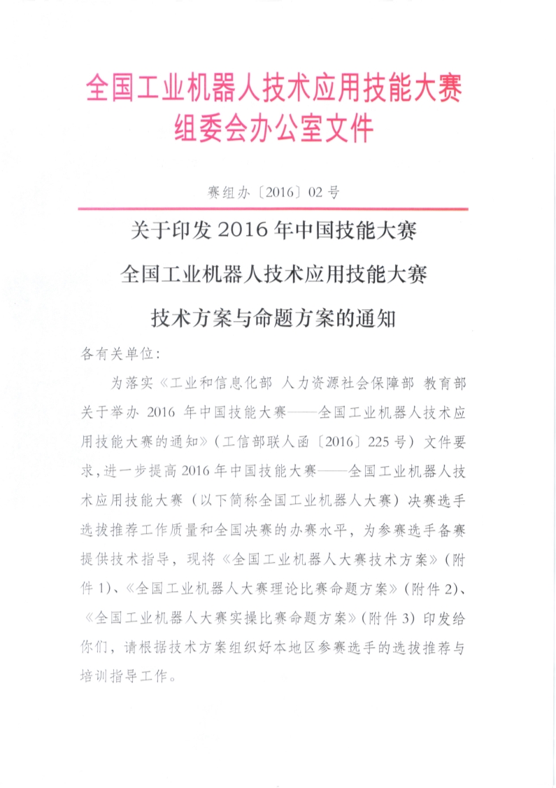 關(guān)于印發(fā)2016年中國技能大賽全國工業(yè)機器人技術(shù)應(yīng)用技能大賽技術(shù)方案與命題方案的通知.pdf