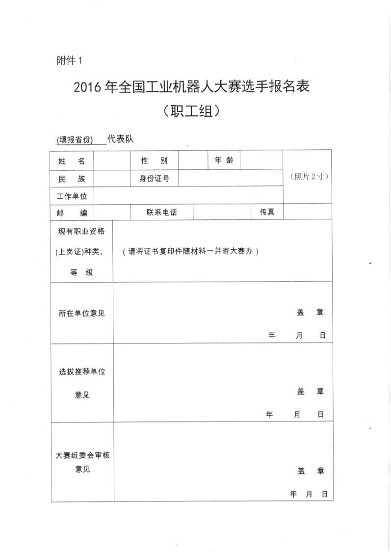 2016年全國(guó)工業(yè)機(jī)器人大賽選手報(bào)名表(職工組和學(xué)生組).doc