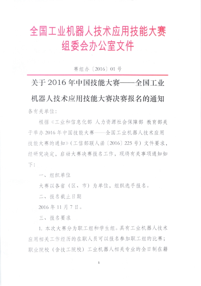 關(guān)于2016年中國(guó)技能大賽——全國(guó)工業(yè)機(jī)器人技術(shù)應(yīng)用技能大賽決賽報(bào)名的通知.pdf