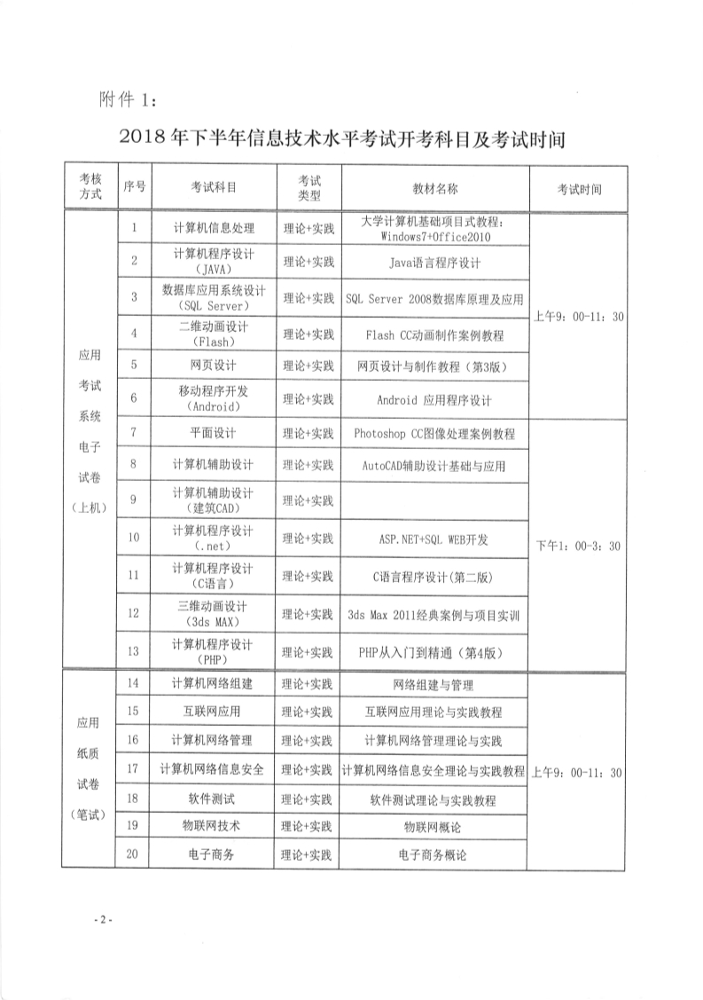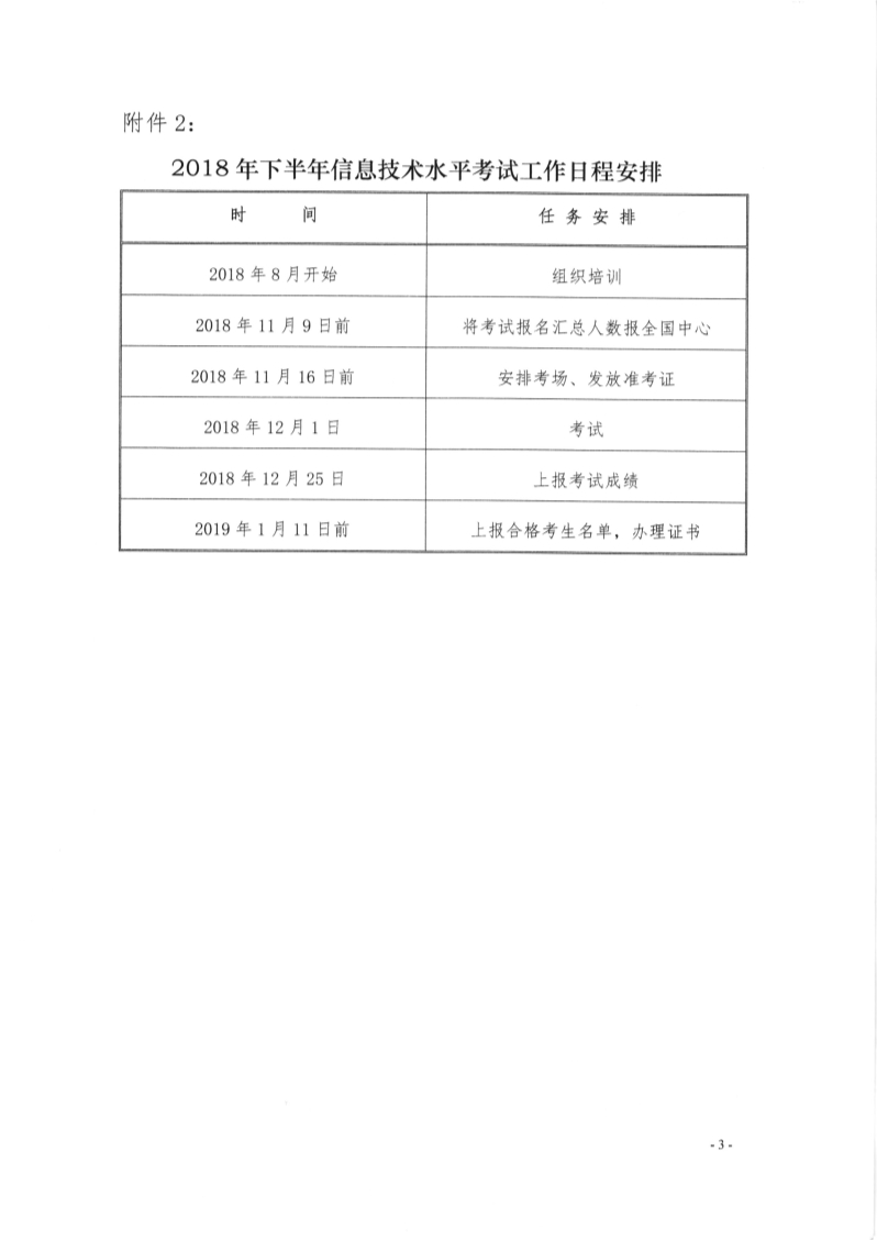 關(guān)于印發(fā)2018年下半年信息技術(shù)水平考試工作安排的通知