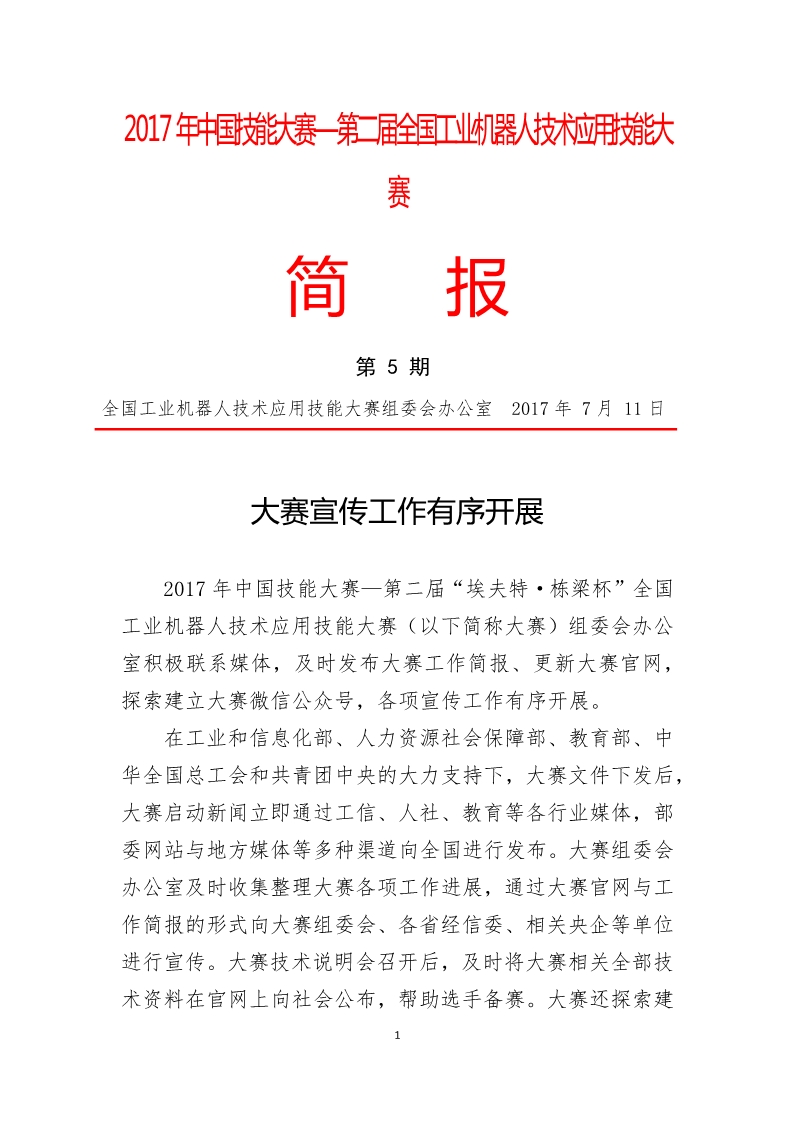 2017年中國技能大賽——第二屆全國工業(yè)機器人技術應用技能大賽簡報(第5期)