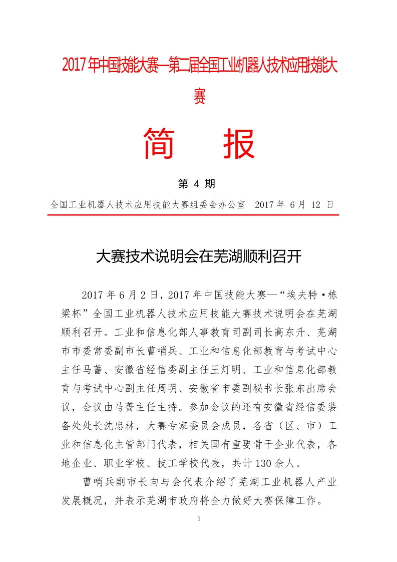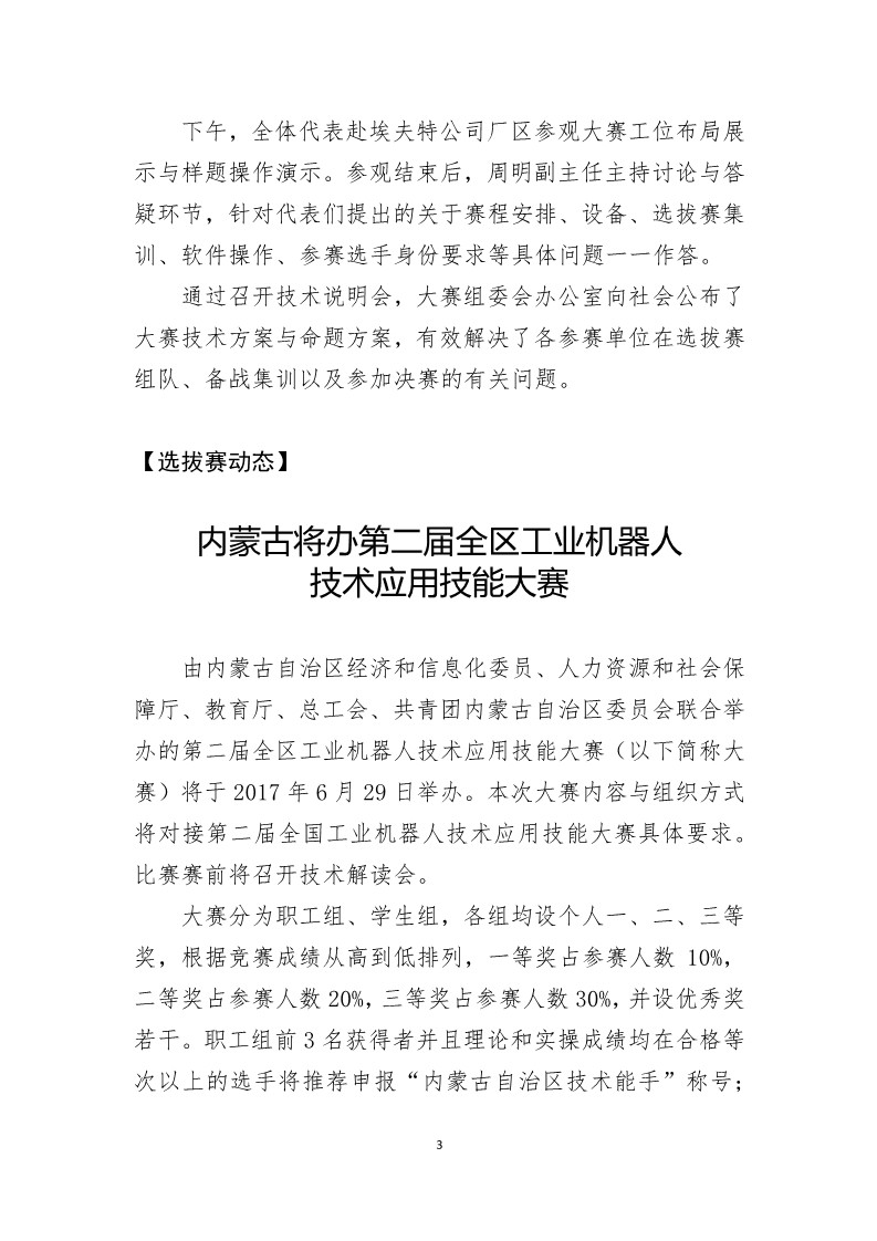 2017年中國技能大賽——第二屆全國工業(yè)機(jī)器人技術(shù)應(yīng)用技能大賽簡報(bào)(第4期)