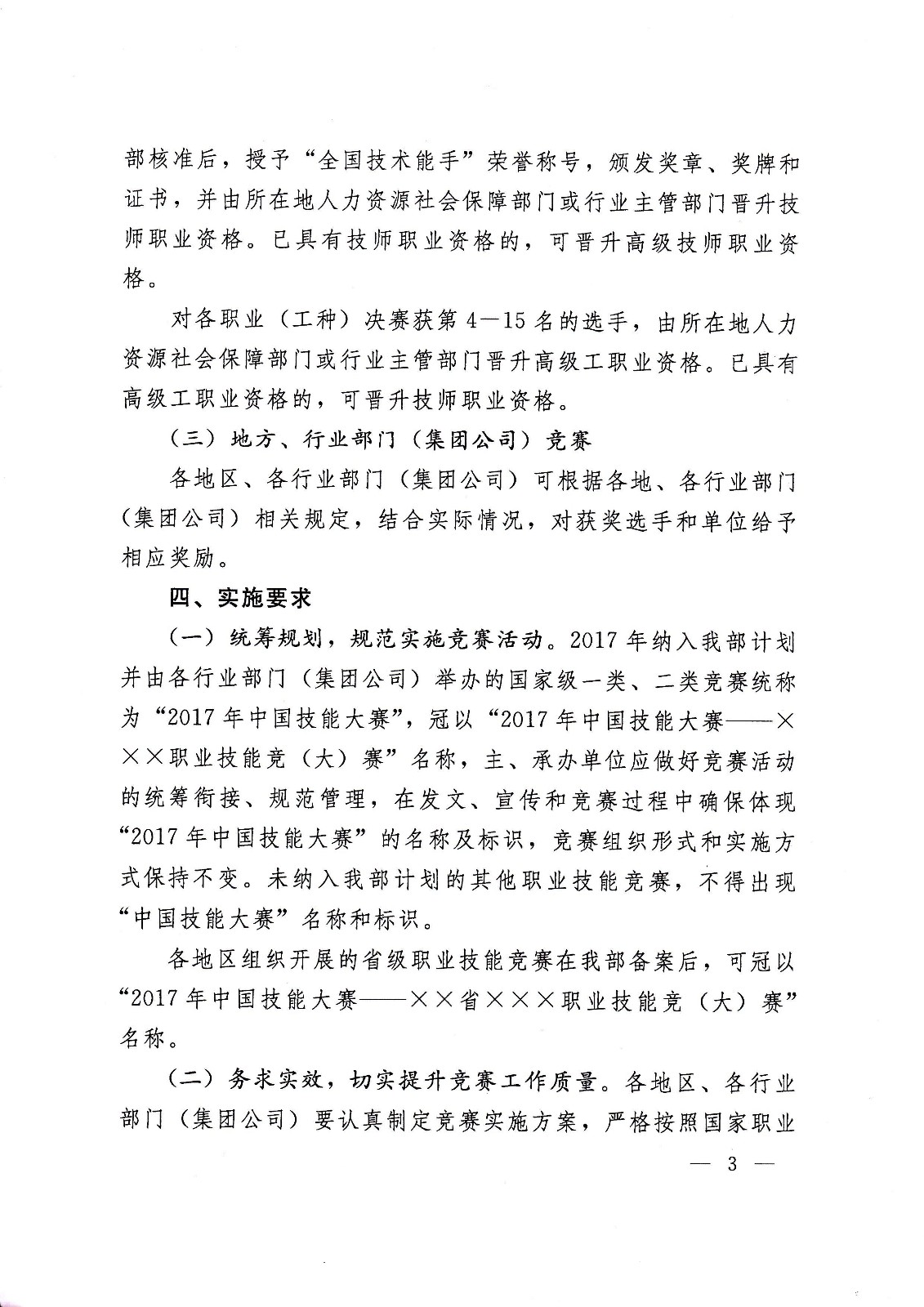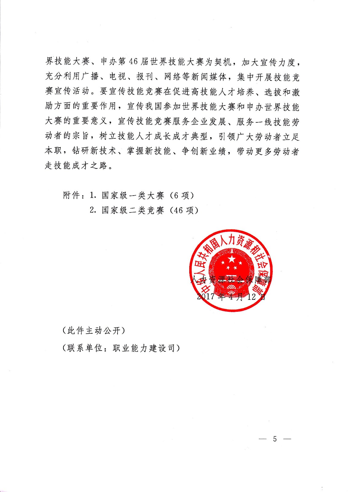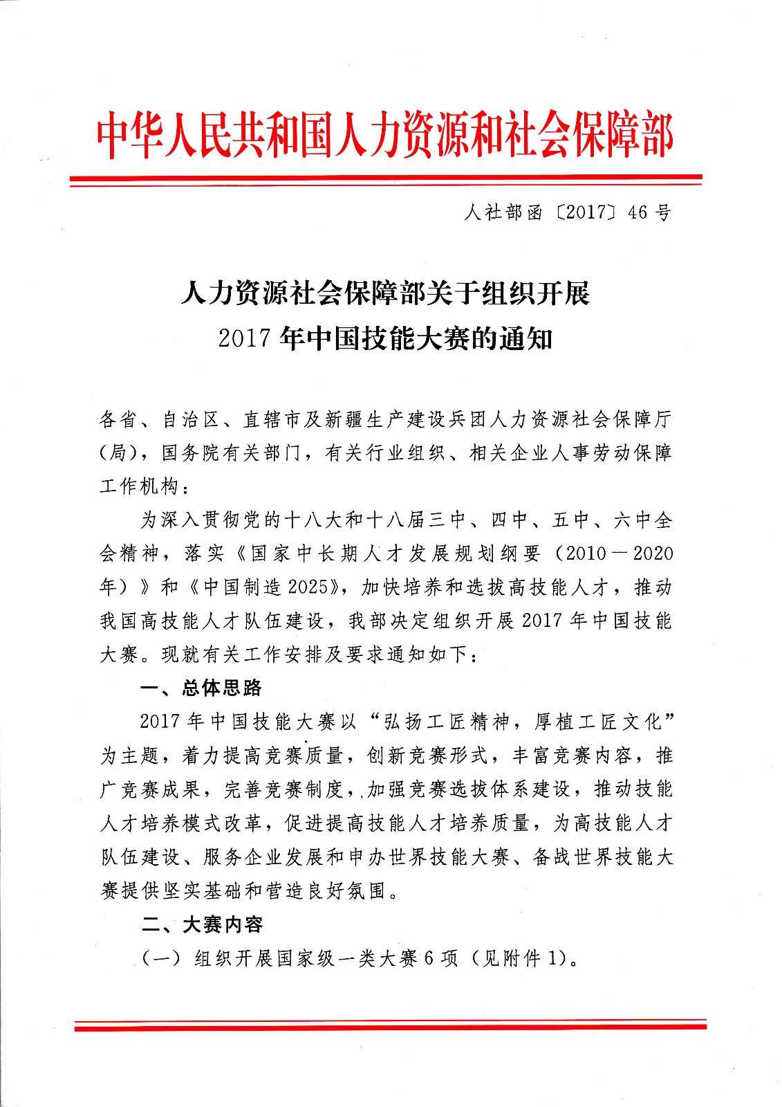 人社部函[2017]46號 人力資源社會保障部關(guān)于組織開展2017年中國技能大賽的通知.pdf