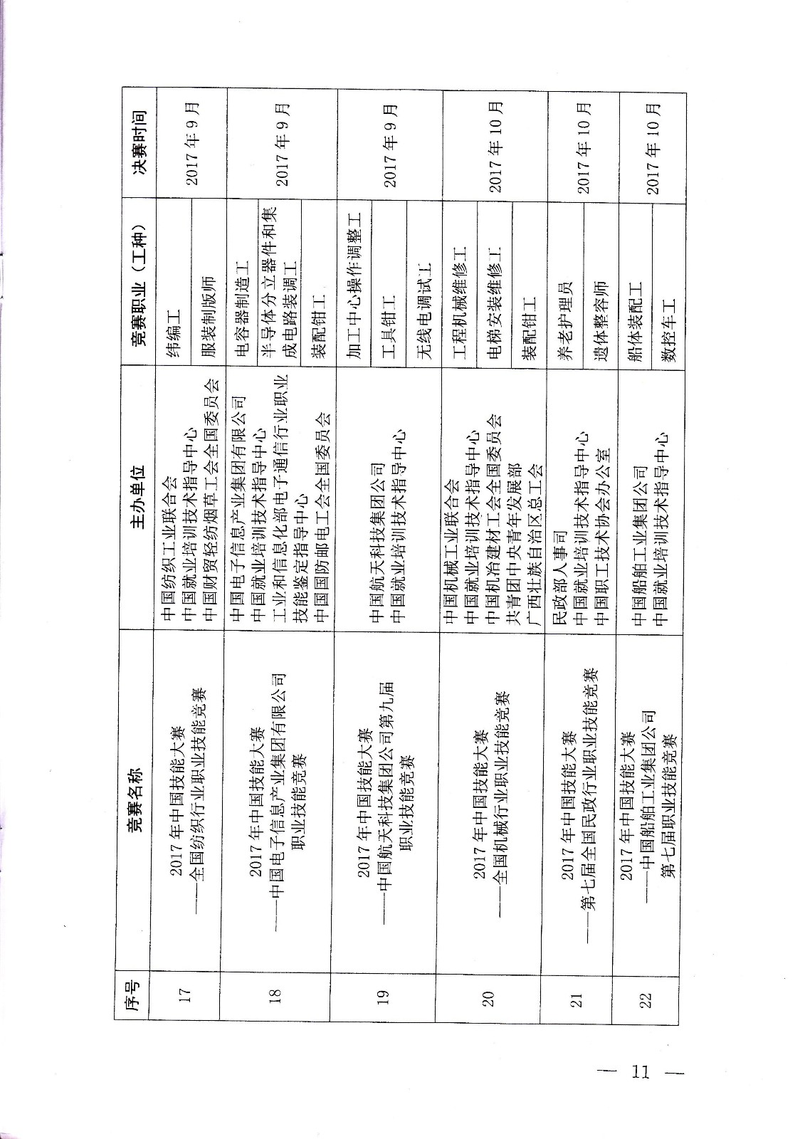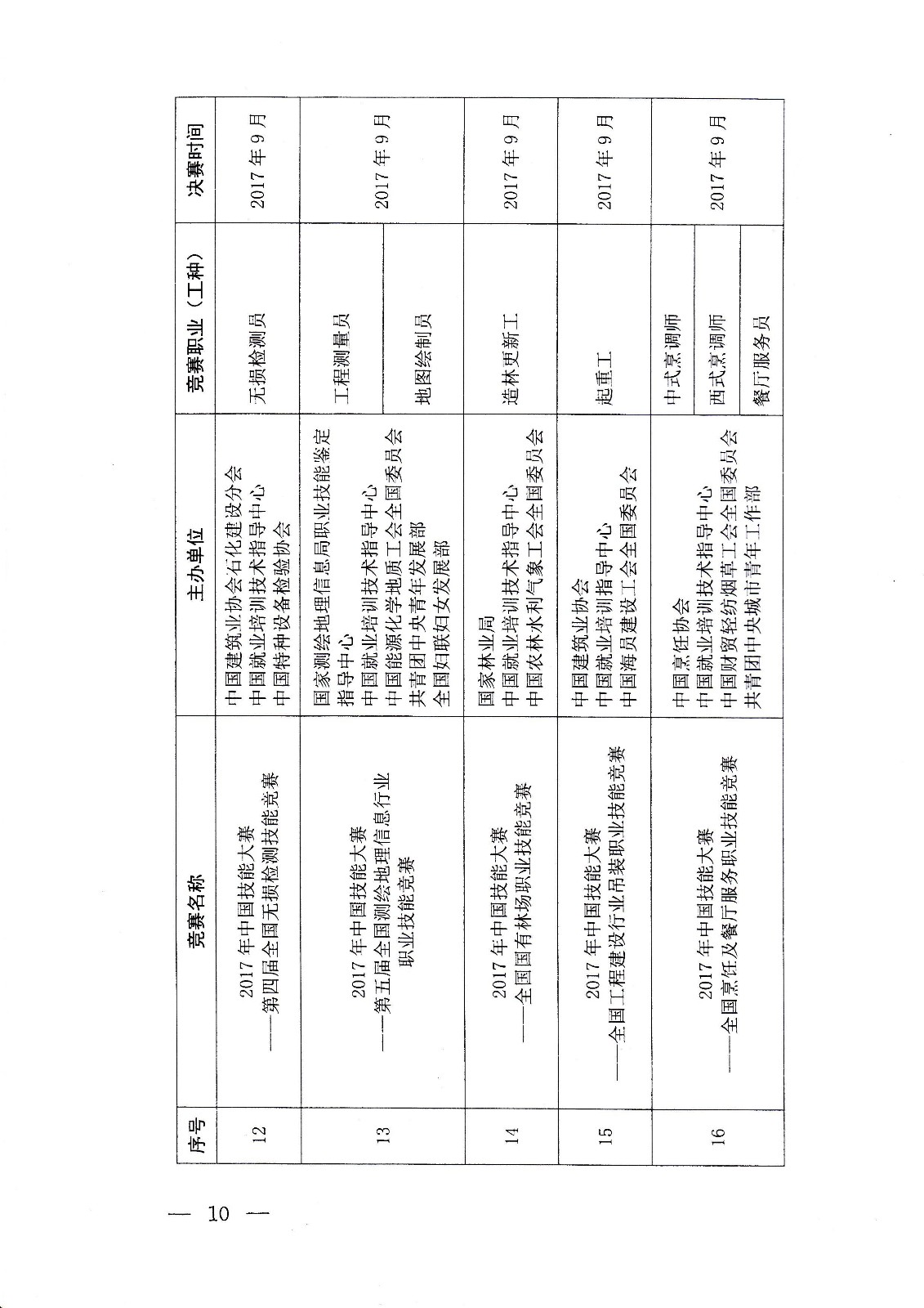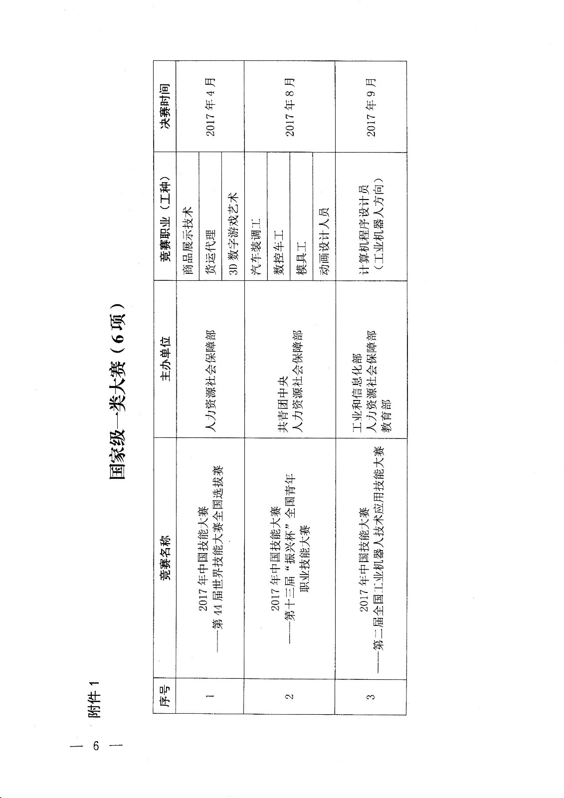 人力資源社會保障部關(guān)于組織開展2017年中國技能大賽的通知