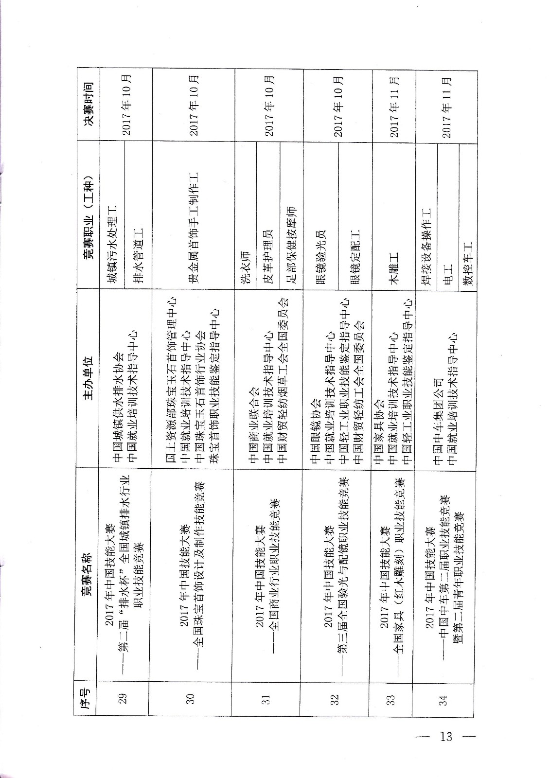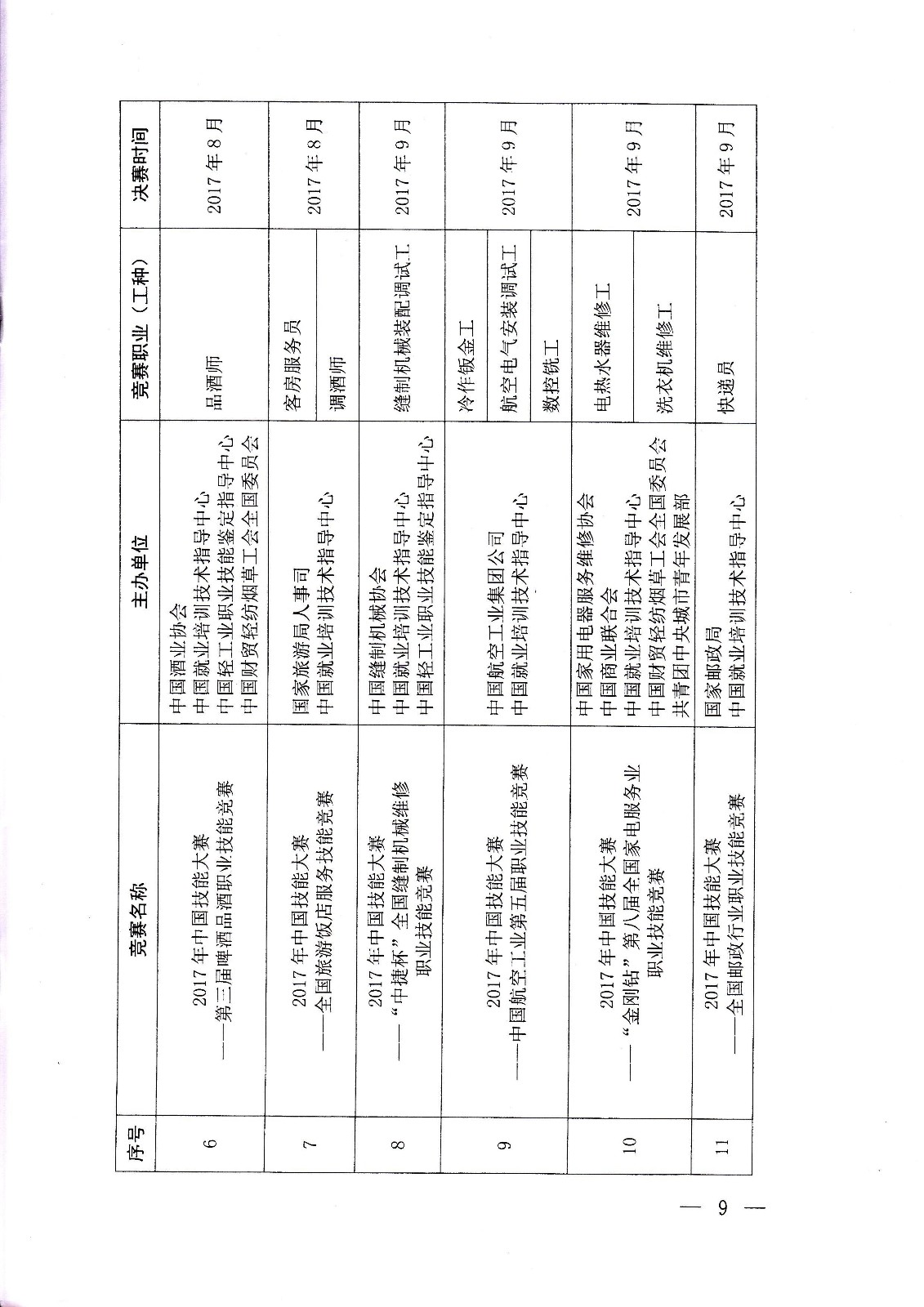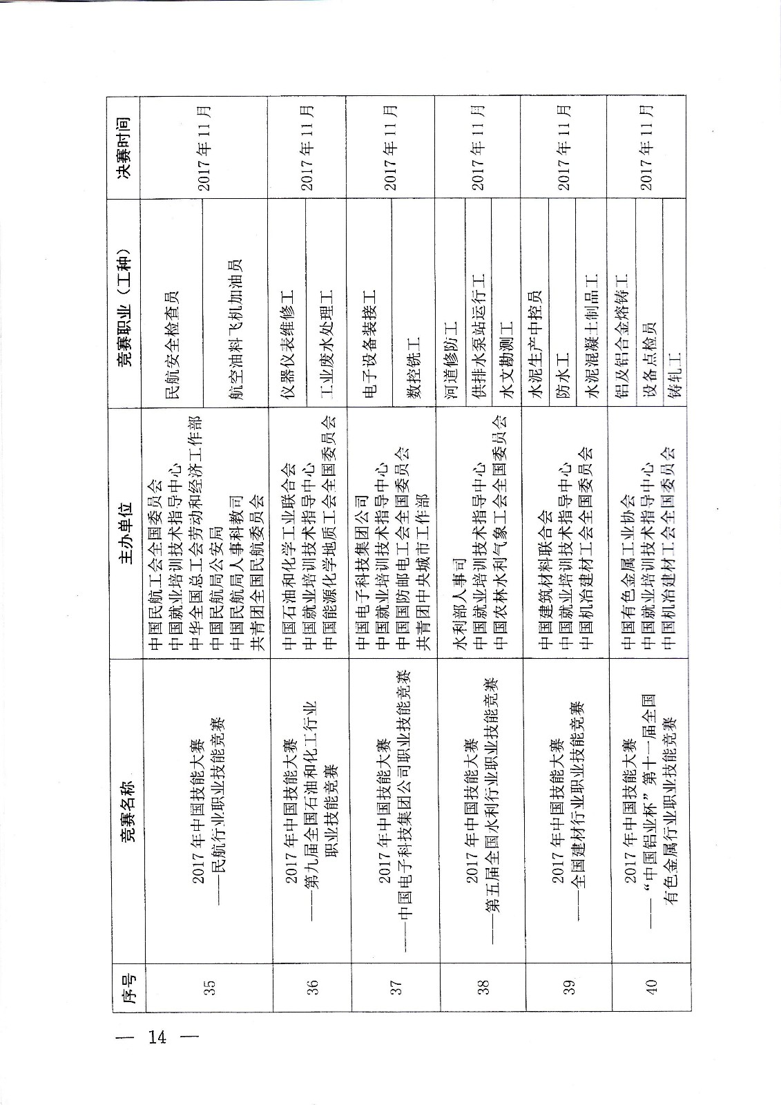 人力資源社會保障部關(guān)于組織開展2017年中國技能大賽的通知