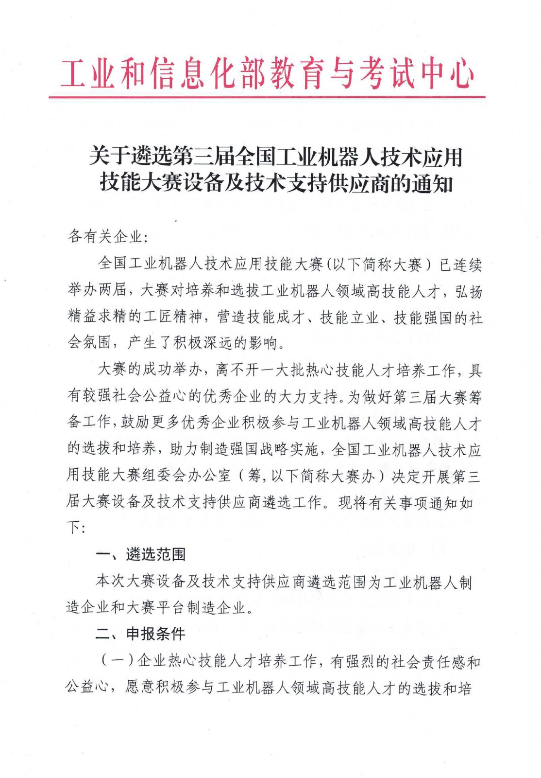 關(guān)于遴選第三屆全國工業(yè)機器人大賽設(shè)備及技術(shù)支持供應(yīng)商的通知.pdf