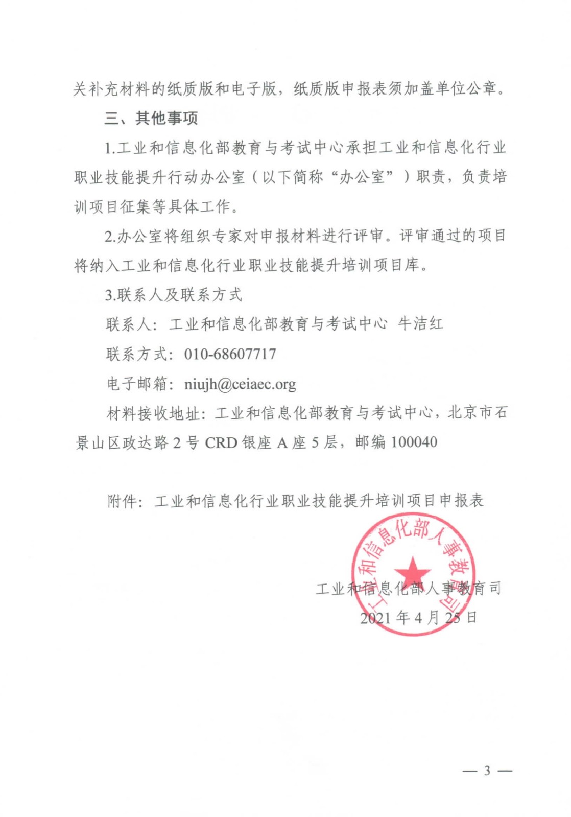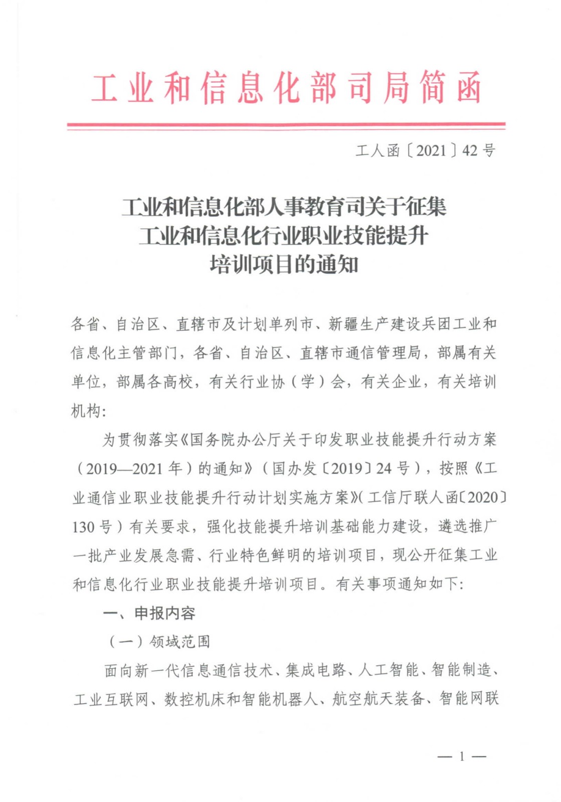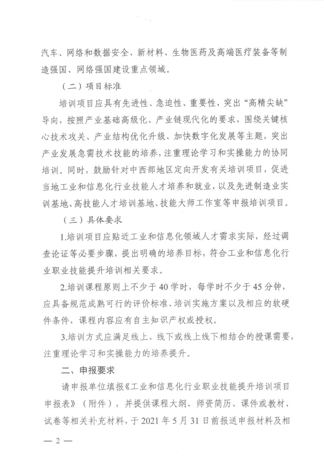工業(yè)和信息化部人事教育司關于征集工業(yè)和信息化行業(yè)職業(yè)技能提升培訓示范項目的通知