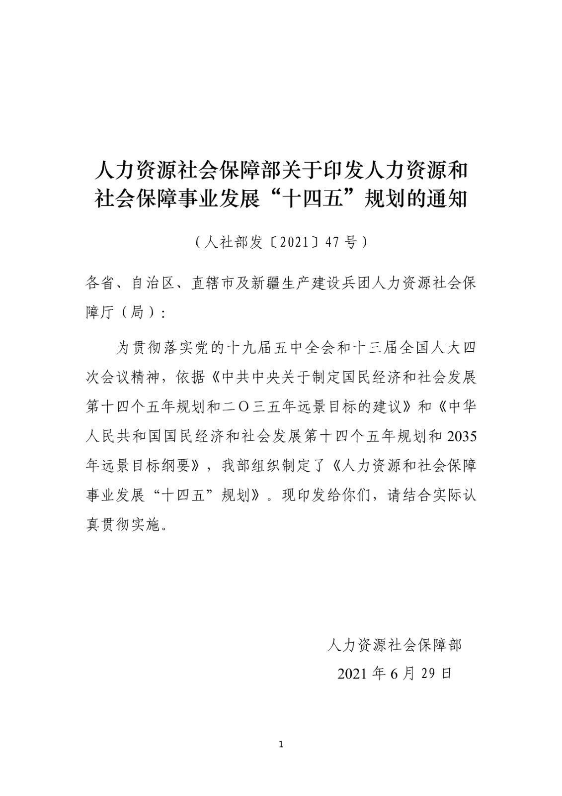 人力資源社會(huì)保障部關(guān)于印發(fā)人力資源和社會(huì)保障事業(yè)發(fā)展“十四五”規(guī)劃的通知