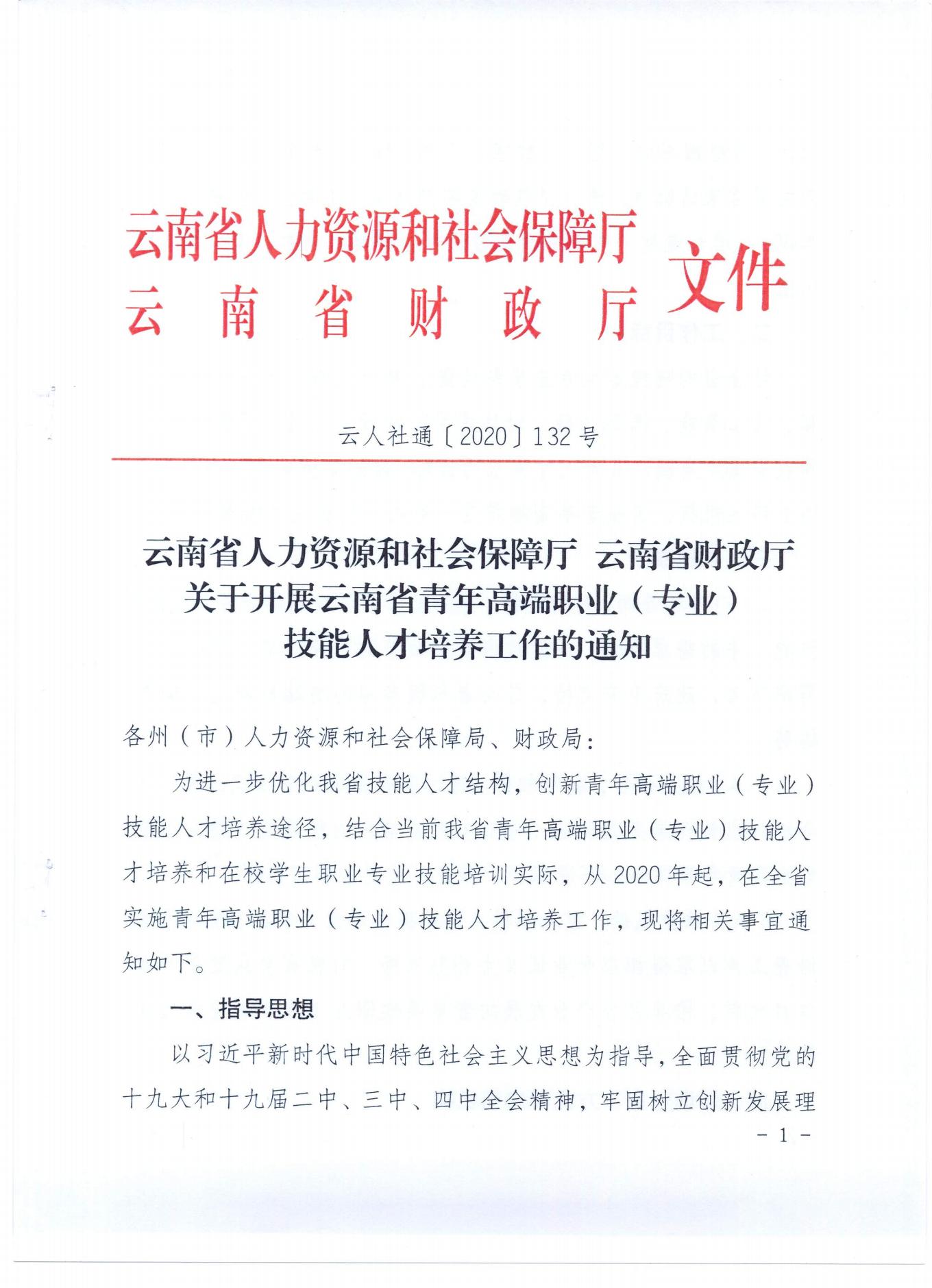 云南省人力資源和社會保障廳 云南省財政廳關于開展云南省青年高端職業(yè)(專業(yè))技能人才培養(yǎng)工作的通知