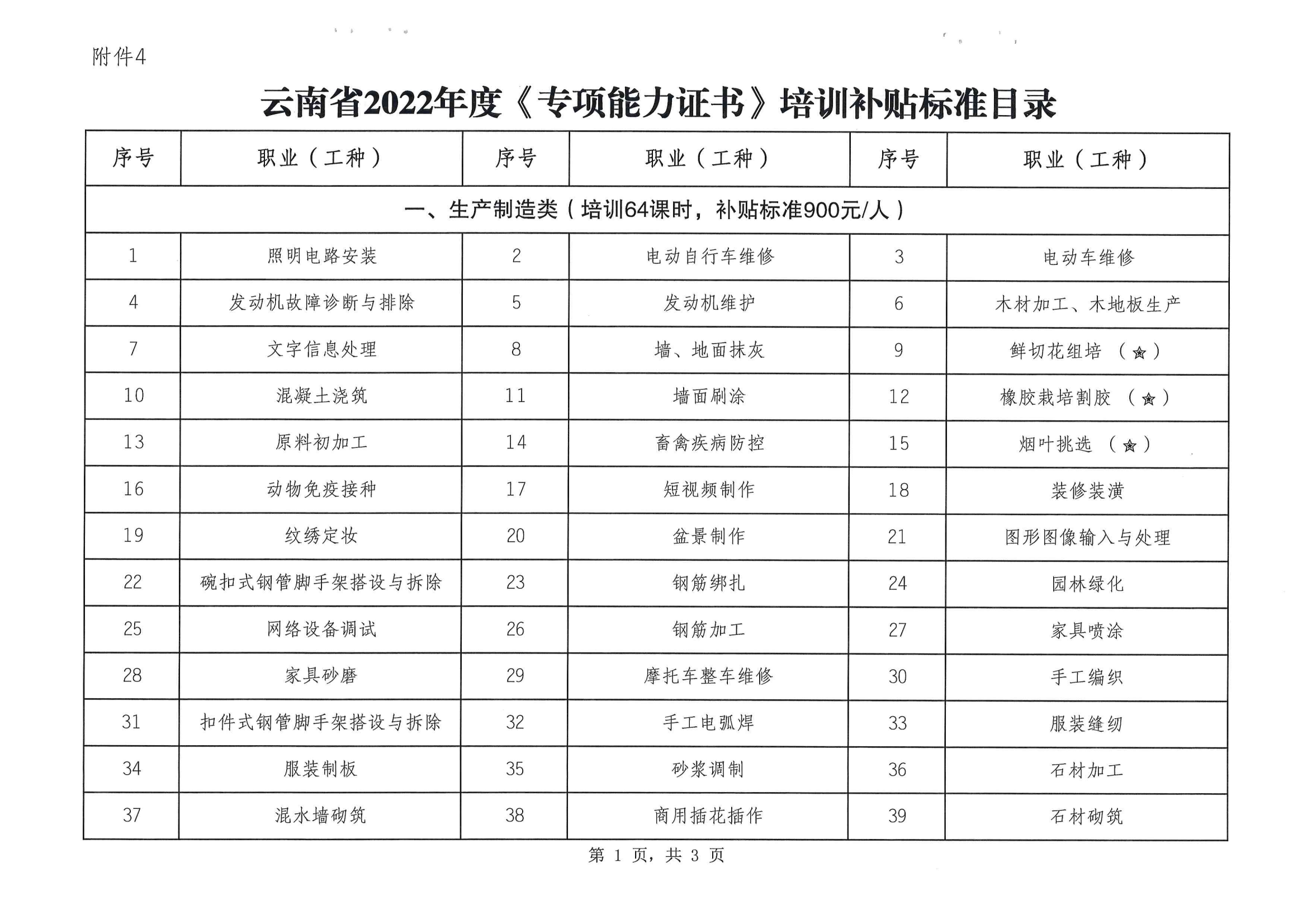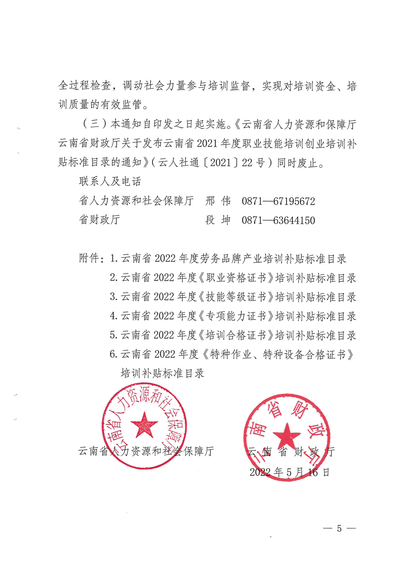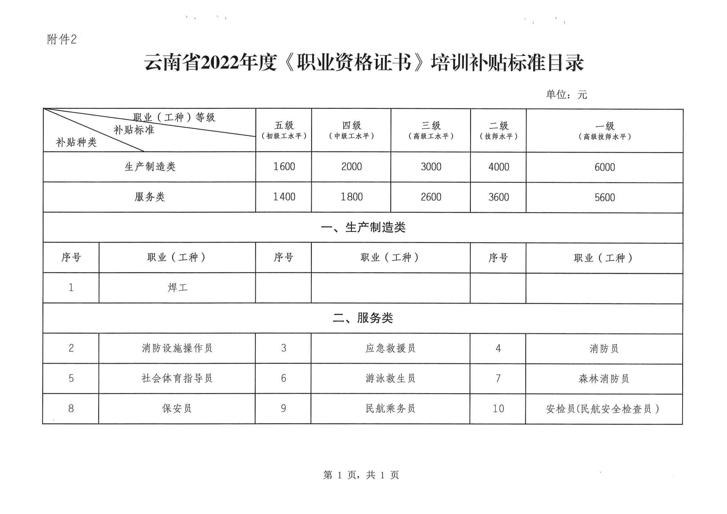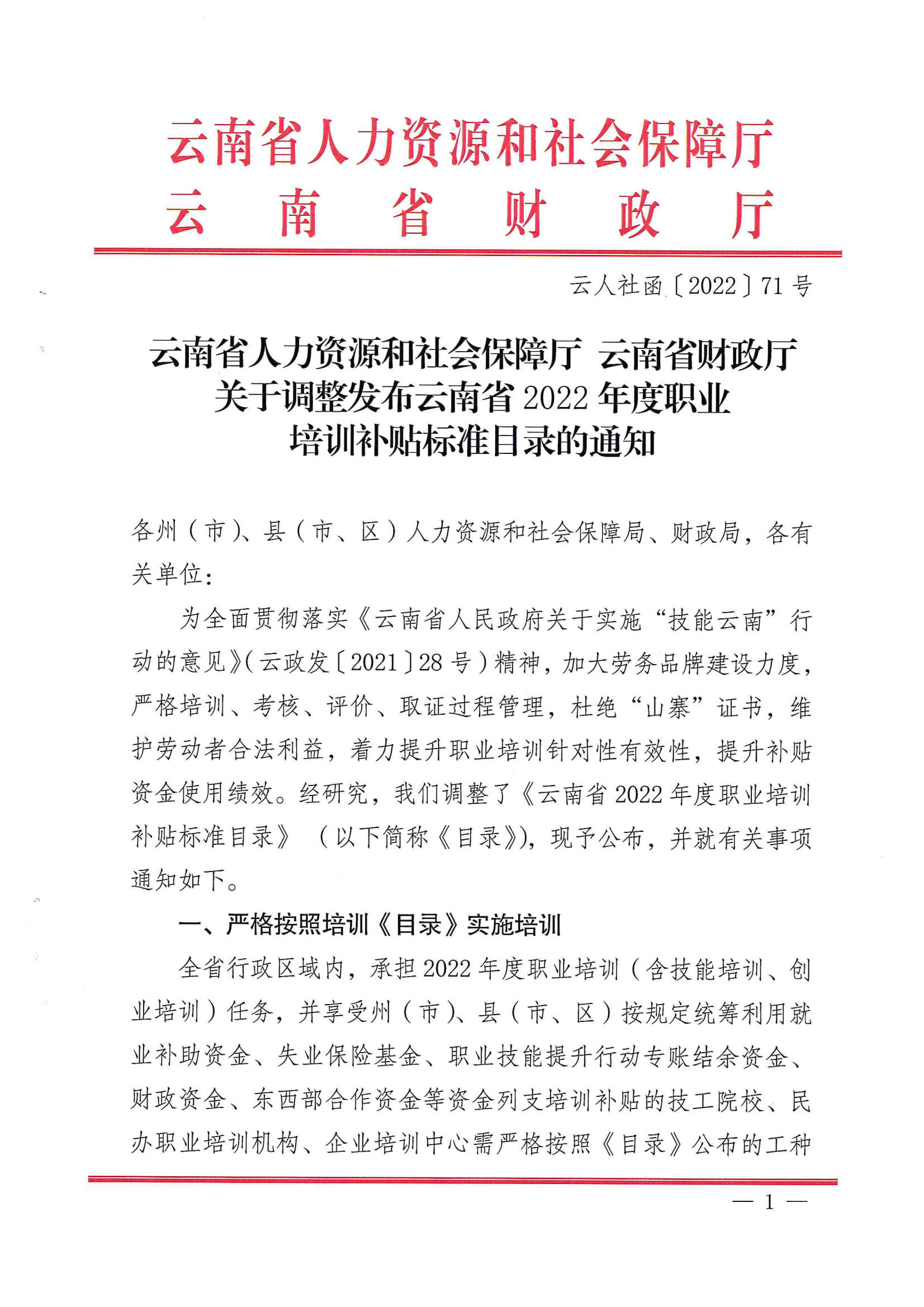 云南省人力資源和社會保障廳 云南省財政廳關(guān)于調(diào)整發(fā)布2022年職業(yè)培訓補貼標準目錄的通知