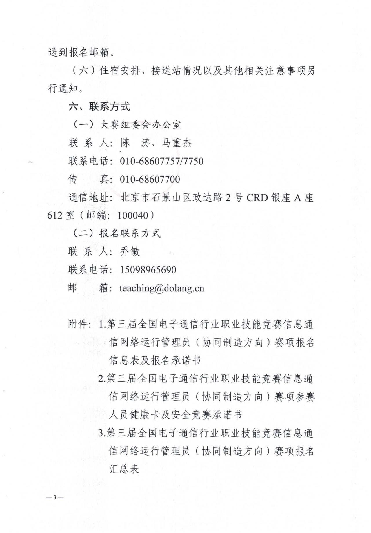 通知下載:關(guān)于第三屆全國(guó)電子通信行業(yè)職業(yè)技能競(jìng)賽信息通信網(wǎng)絡(luò)運(yùn)行管理員(協(xié)同制造方向)賽項(xiàng)決賽報(bào)名的通知.pdf