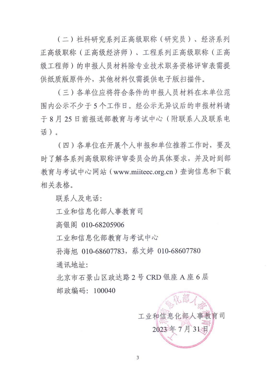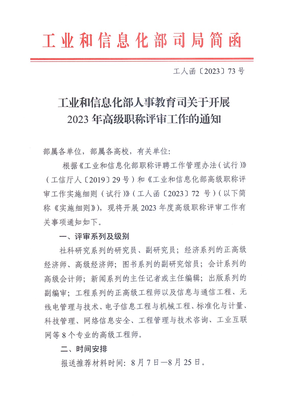 工業(yè)和信息化部人事教育司關(guān)于開展2023年高級(jí)職稱評(píng)審工作的通知