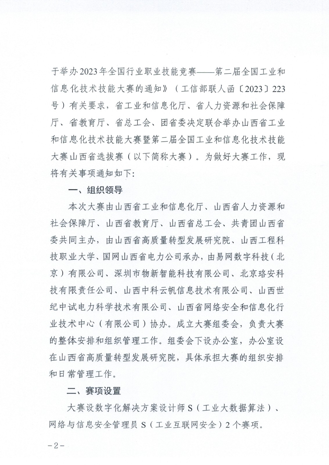 關(guān)于舉辦山西省工業(yè)和信息化技術(shù)技能大賽暨2023年第二屆全國工業(yè)和信息化技術(shù)技能大賽山西省選拔賽的通知