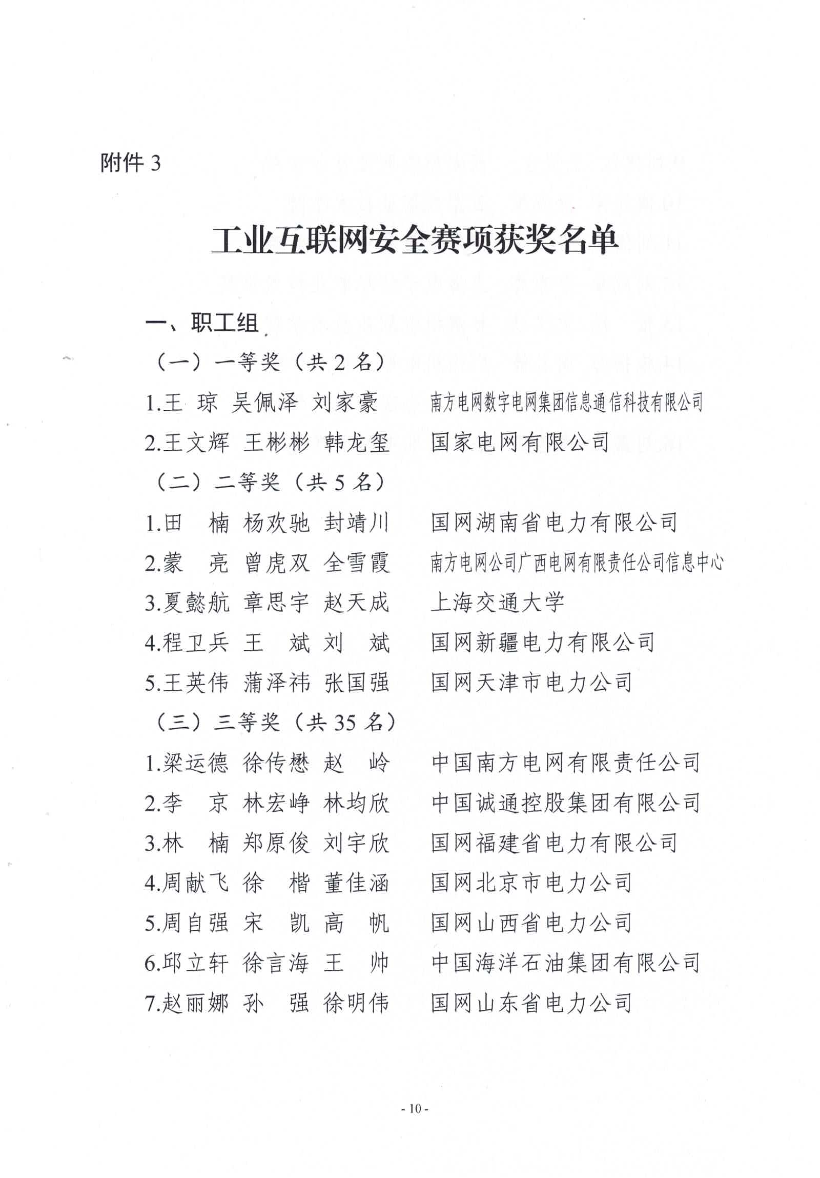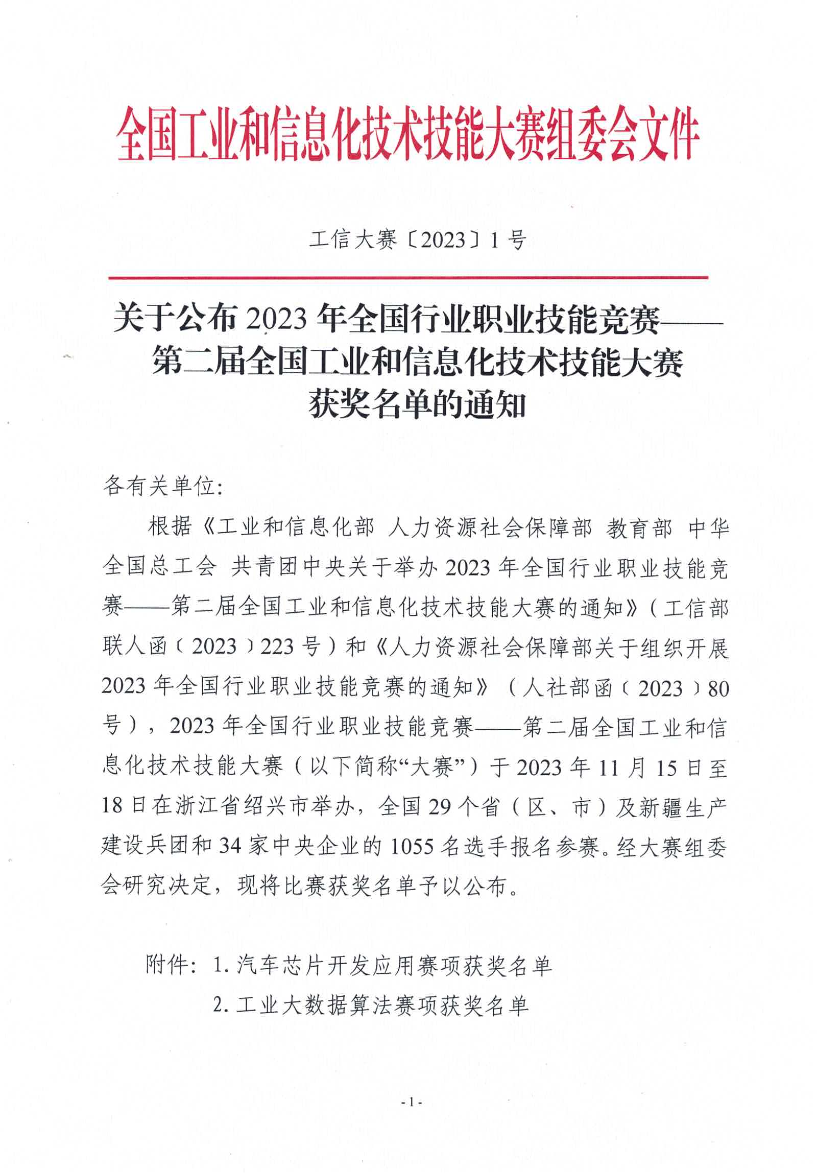 關(guān)于公布2023年全國(guó)行業(yè)職業(yè)技能競(jìng)賽——第二屆全國(guó)工業(yè)和信息化技術(shù)技能大賽獲獎(jiǎng)名單的通知
