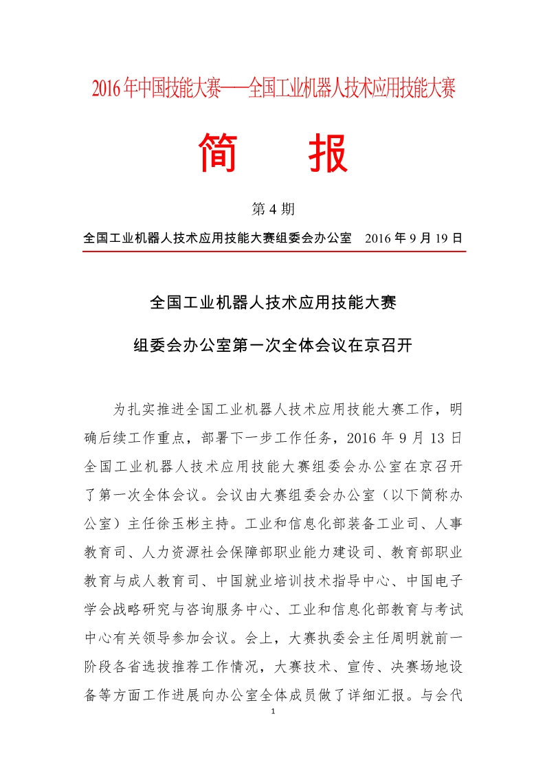 2016 年中國技能大賽——全國工業(yè)機(jī)器人技術(shù)應(yīng)用技能大賽簡報(第4期)
