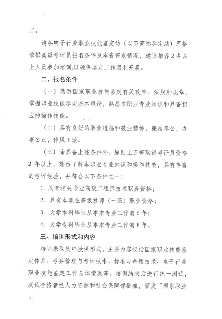 工業(yè)和信息化部電子通信行業(yè)職業(yè)技能鑒定指導中心關于舉辦電子行業(yè)職業(yè)技能鑒定高級考評員培訓班的通知