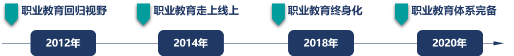 過(guò)去中國(guó)的人口紅利突出,在一定程度上淡化了這一矛盾。伴隨著人口紅利拐點(diǎn)的到來(lái),及時(shí)調(diào)整人才供需結(jié)構(gòu)非常重要。此外,以《國(guó)家戰(zhàn)略性新興產(chǎn)業(yè)發(fā)展規(guī)劃》、《新一代人工智能發(fā)展規(guī)劃》、《工業(yè)互聯(lián)網(wǎng)行動(dòng)計(jì)劃》為代表的新型發(fā)展戰(zhàn)略陸續(xù)推出,明確國(guó)家將從勞動(dòng)密集型向高附加值的技術(shù)密集型經(jīng)濟(jì)模式轉(zhuǎn)變。這個(gè)變化也對(duì)勞動(dòng)力資源提出了更高的要求。因此,自2011年-2012年以來(lái),國(guó)務(wù)院、教育部、人社部等相關(guān)部門(mén)連續(xù)出臺(tái)了一系列的措施,意在利用校企結(jié)合、互聯(lián)網(wǎng)+、終身教育等多理念多方式相結(jié)合的方法,力爭(zhēng)到2020年逐漸建立起完備的職業(yè)教育體系,為國(guó)家戰(zhàn)略的落地提供人才支撐。