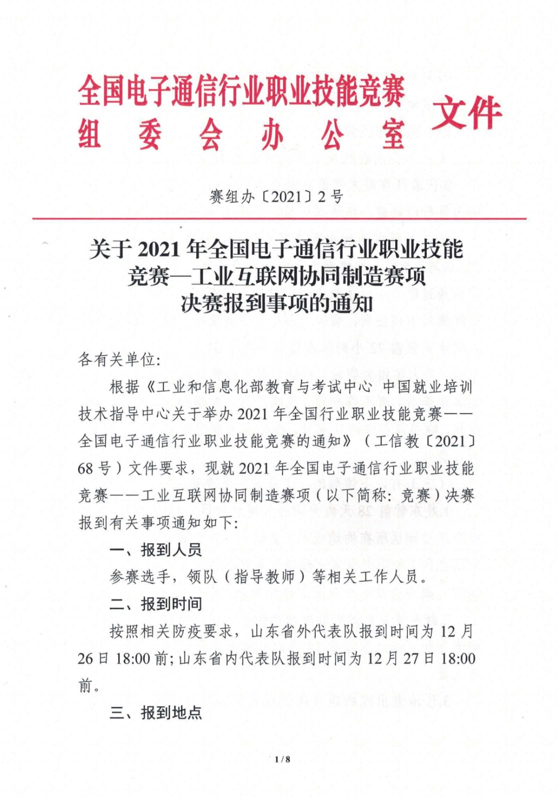 關(guān)于2021年全國(guó)電子通信行業(yè)職業(yè)技能競(jìng)賽——工業(yè)互聯(lián)網(wǎng)協(xié)同制造賽項(xiàng)決賽報(bào)到事項(xiàng)的通知